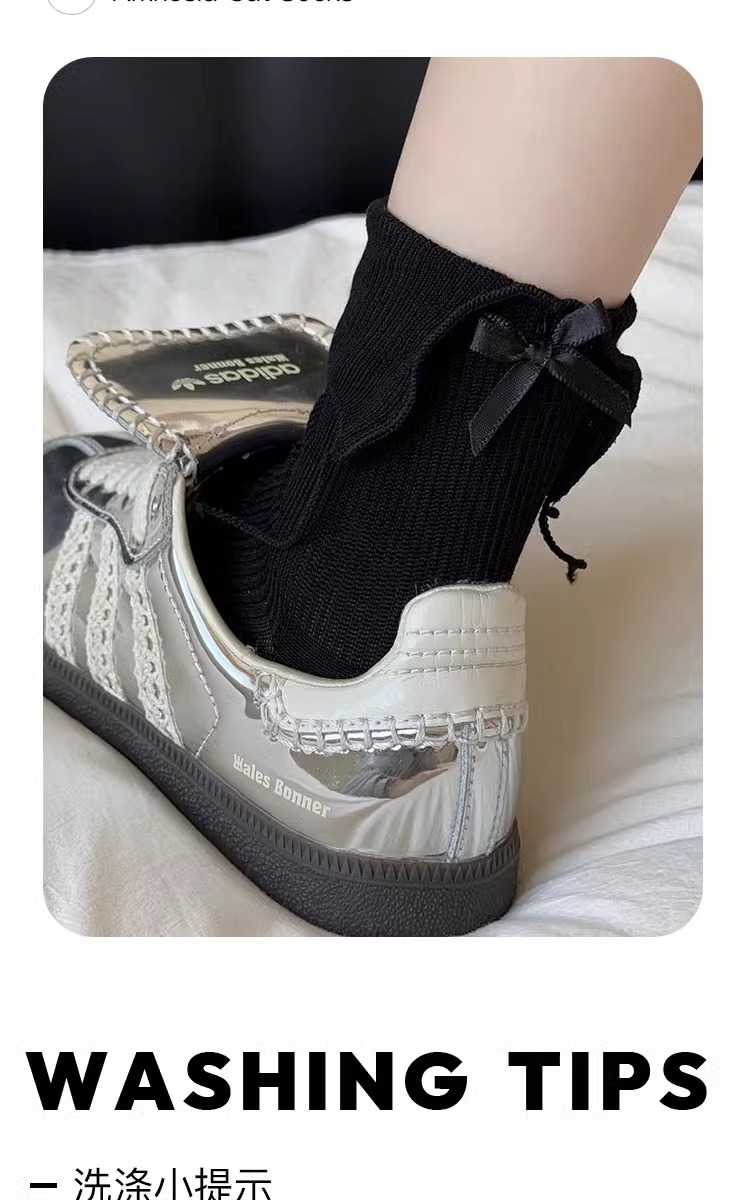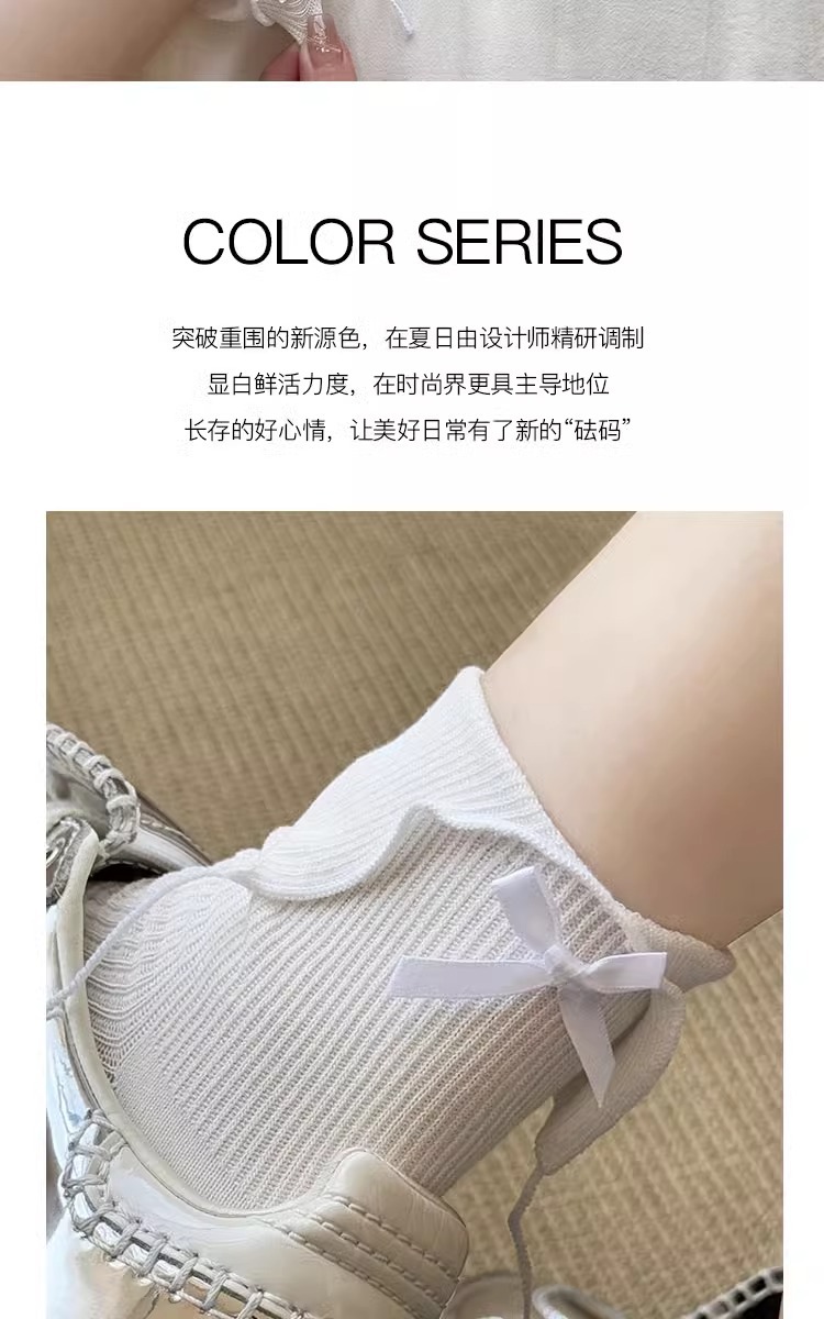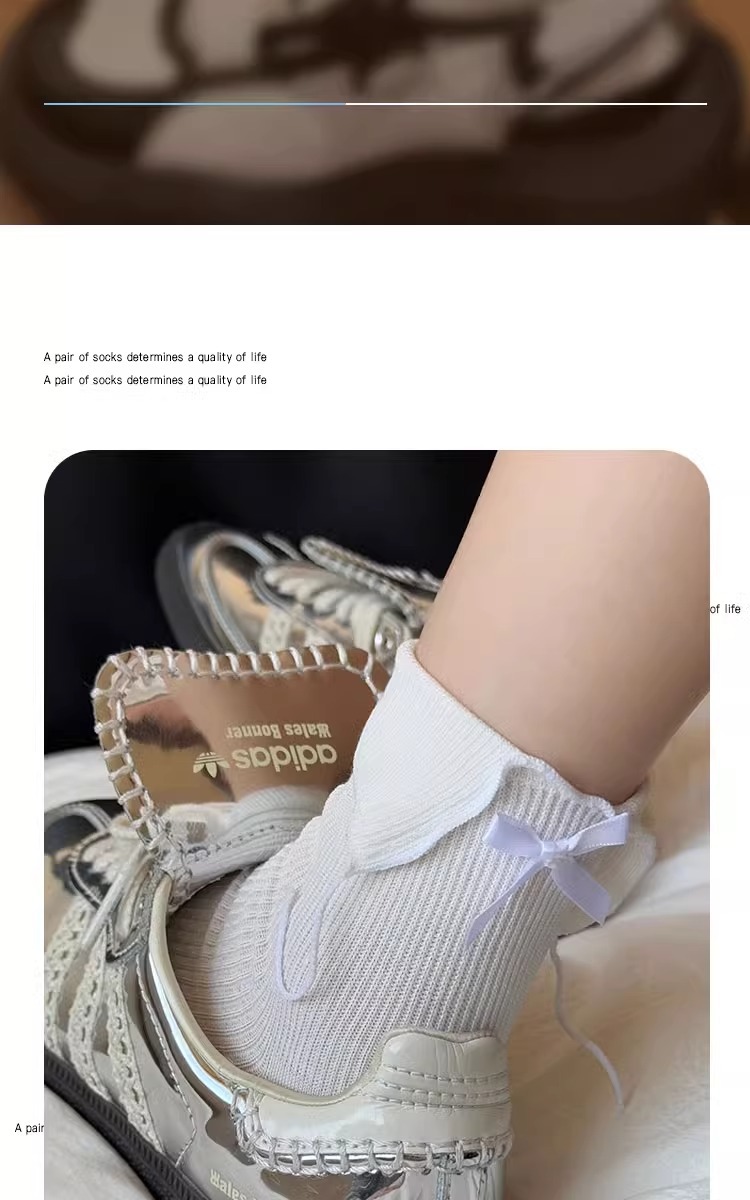 흰색 활 양말 여성의 봄과 가을 면화 중간 길이 양말 봄과 여름 얇은 일본 jk 스타킹 작은 가죽 신발
