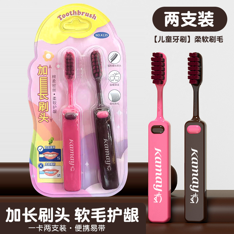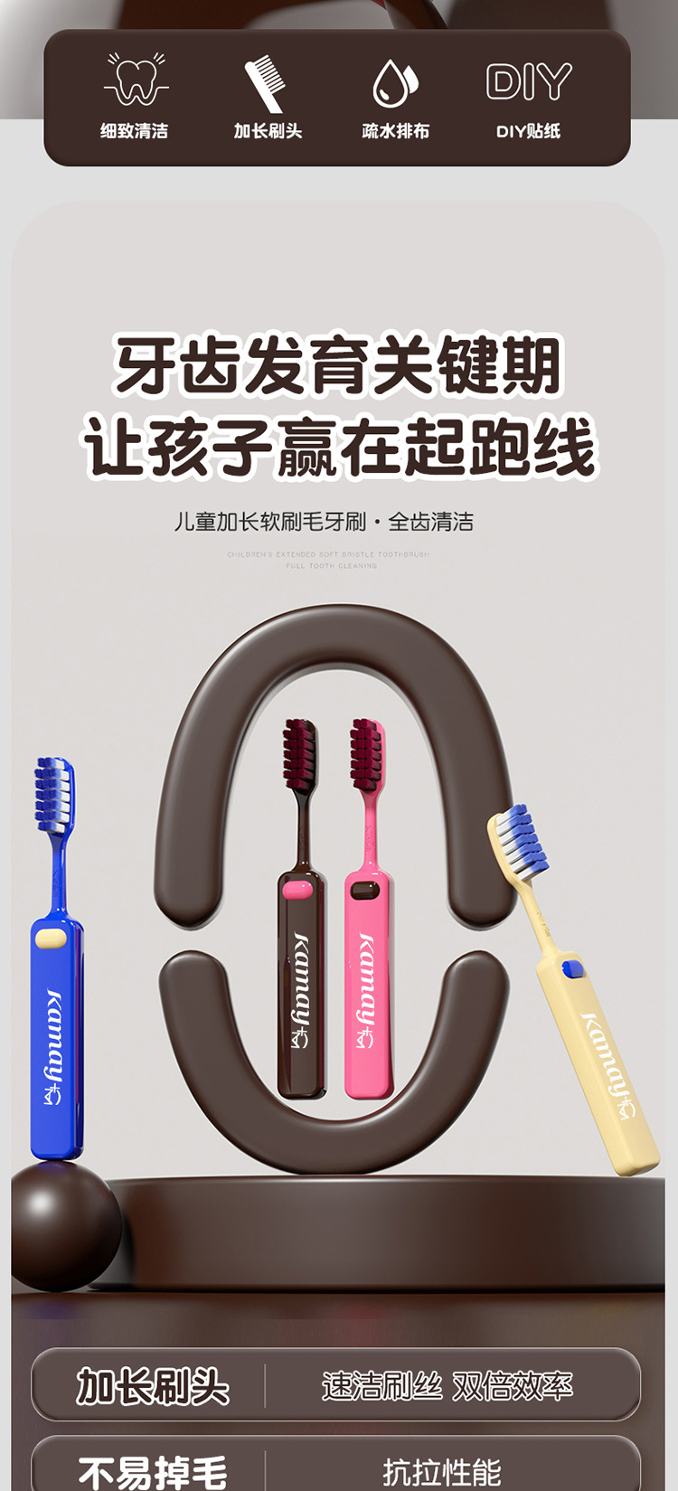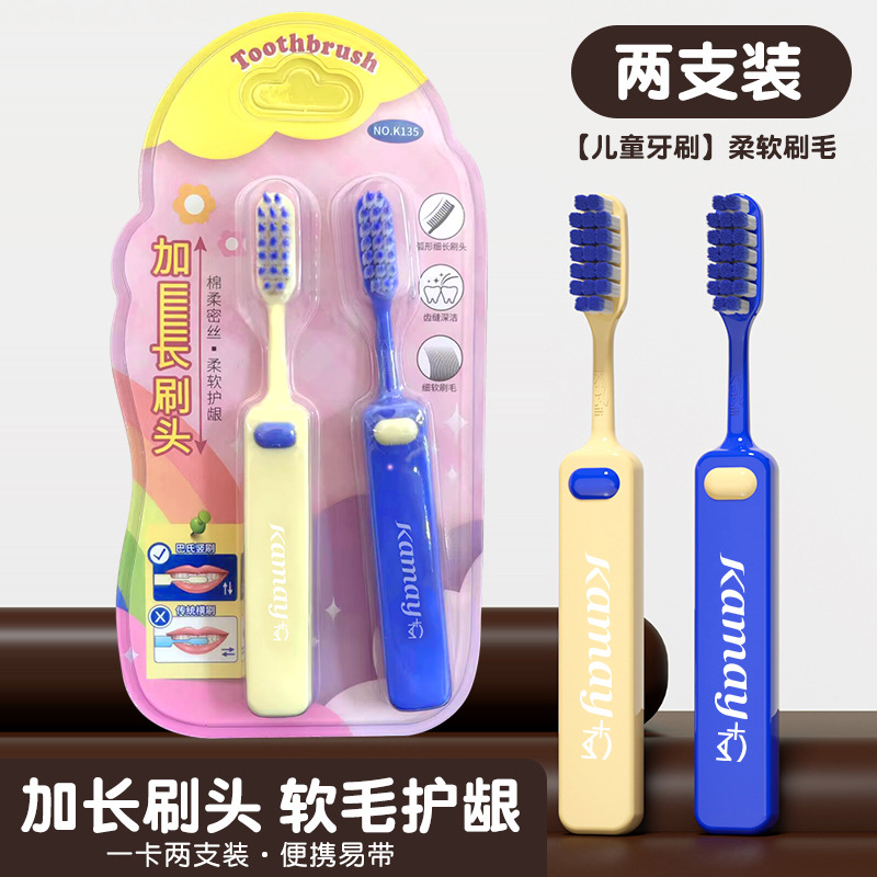 [혁신적인 새 긴 머리 어린이 칫솔] 아기 2 ~ 12 세 부드러운 머리 초등학생 치아 교체 기간스토어 가기