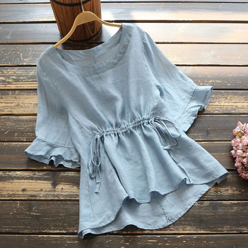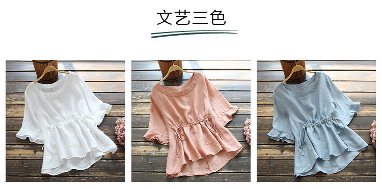 코튼 뉴 셔츠 2025 여름 여자 올 매치 느슨한 허리 반팔 셔츠 러플-슬리브 탑스토어 가기