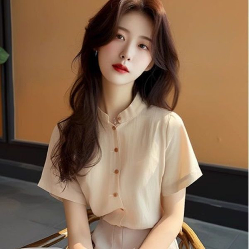 새로운 중국 스타일 국가 유행 쉬폰 탑 살구색 반팔 셔츠 2025 새로운 여성 여름 하이 엔드 버튼 작은 셔츠스토어 가기