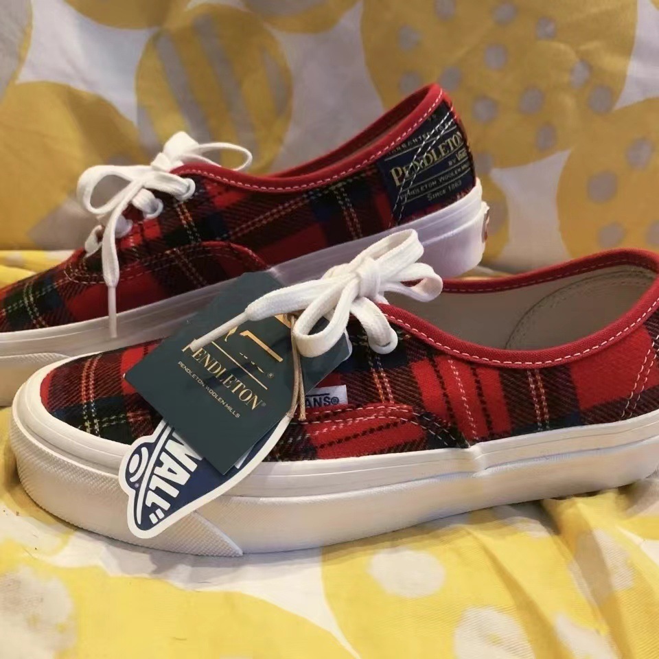 Vance 스니커즈의 Putian 버전 빨간색 격자 무늬 체커보드 여름 남성과 여성의 같은 스타일 커플 슬립 온 새로운 캔버스 신발스토어 가기