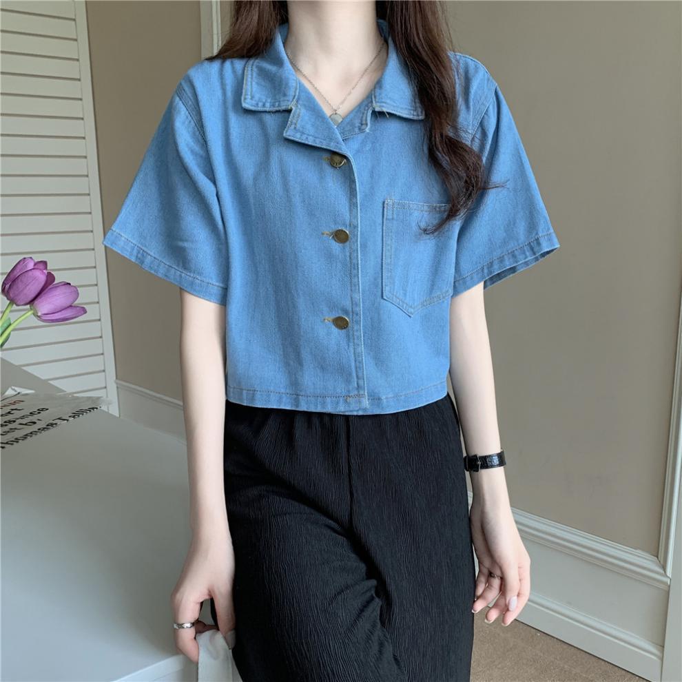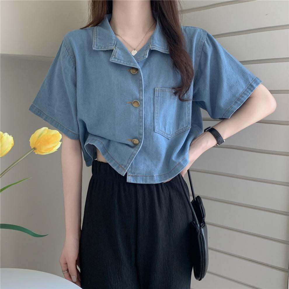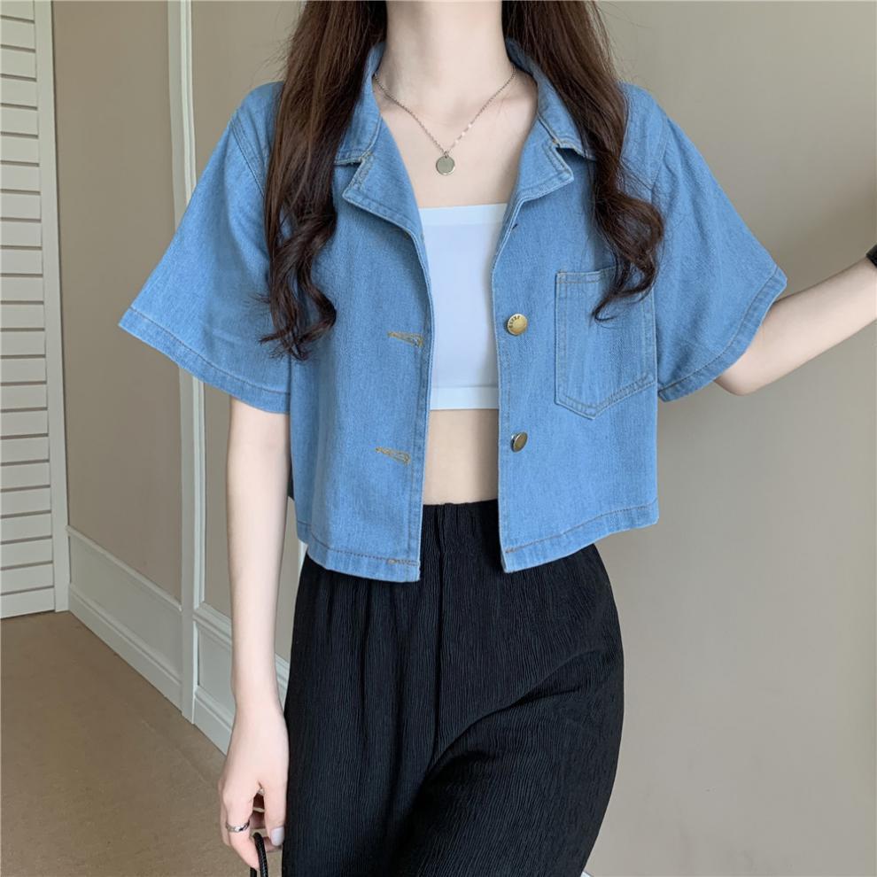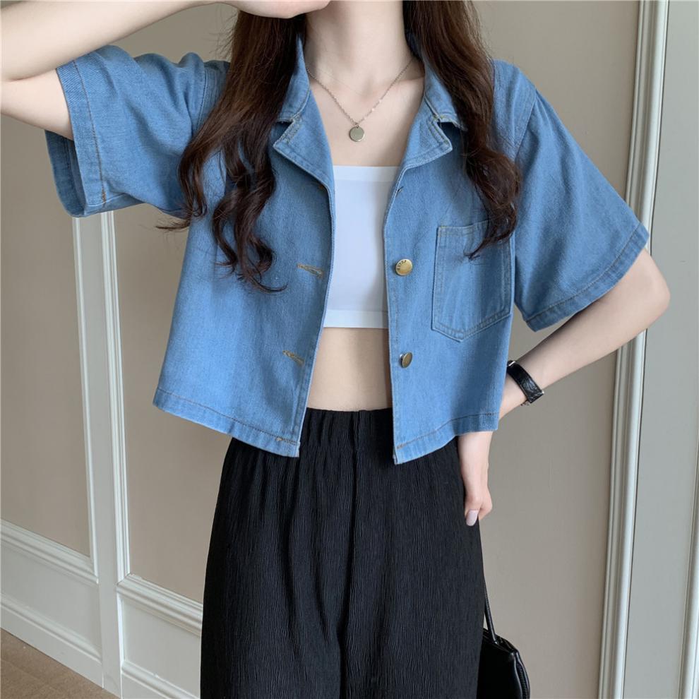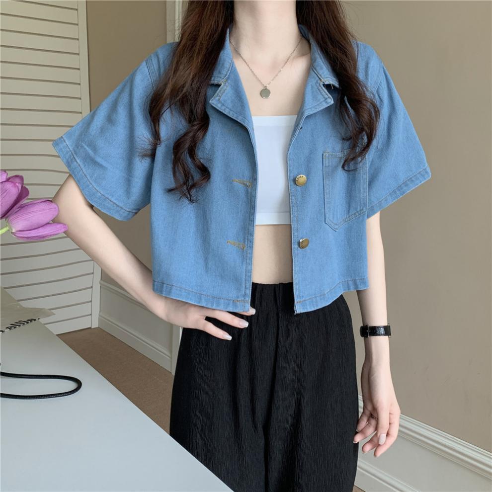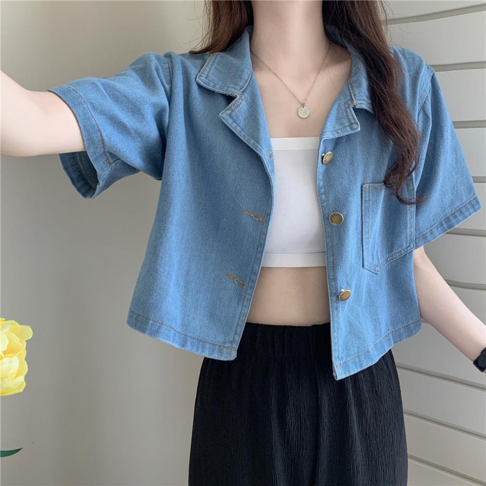 홍콩 스타일 데님 코트 여자 쇼트 아우터웨어 트렌디 한 여름 2025 느슨한 레트로 올 매치 캐주얼 탑 재킷스토어 가기