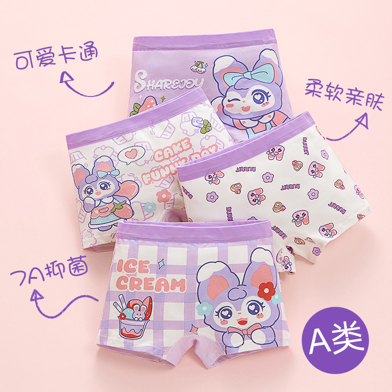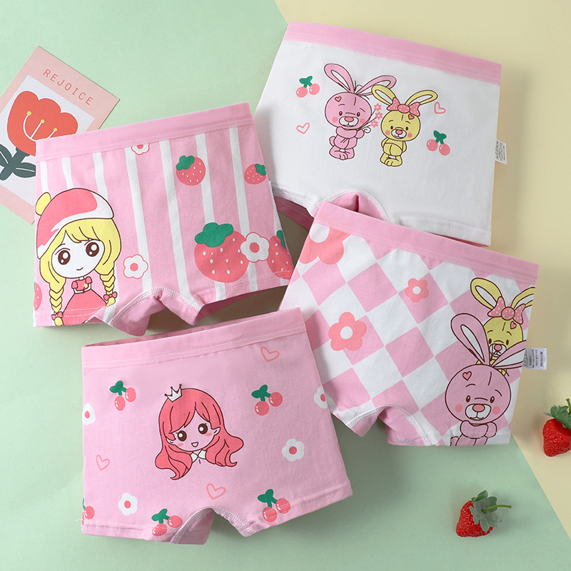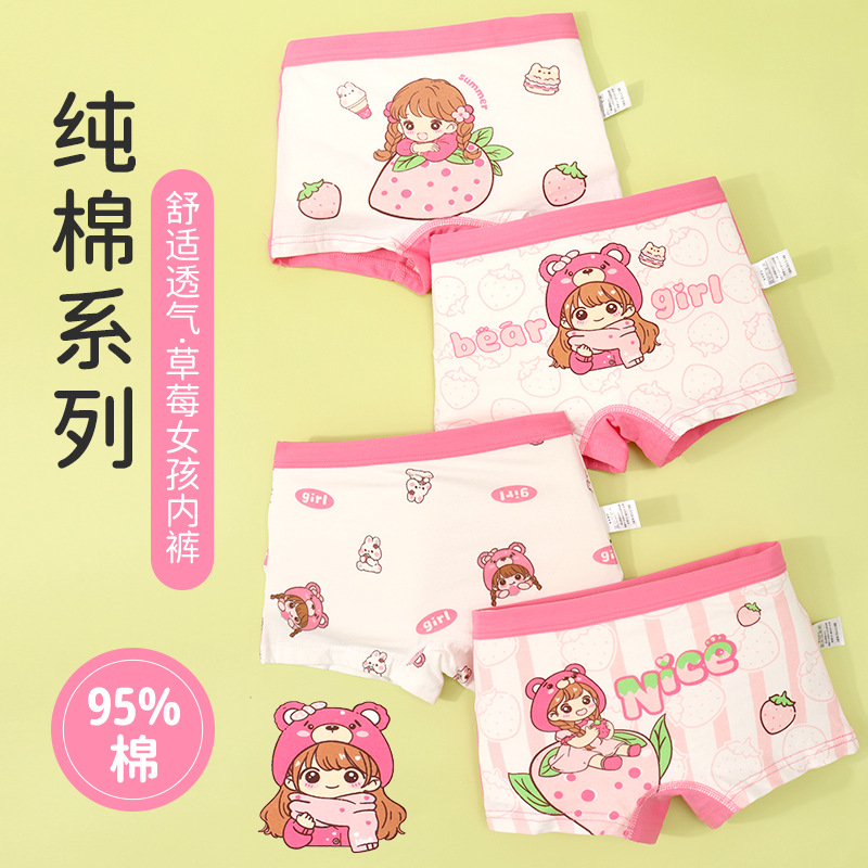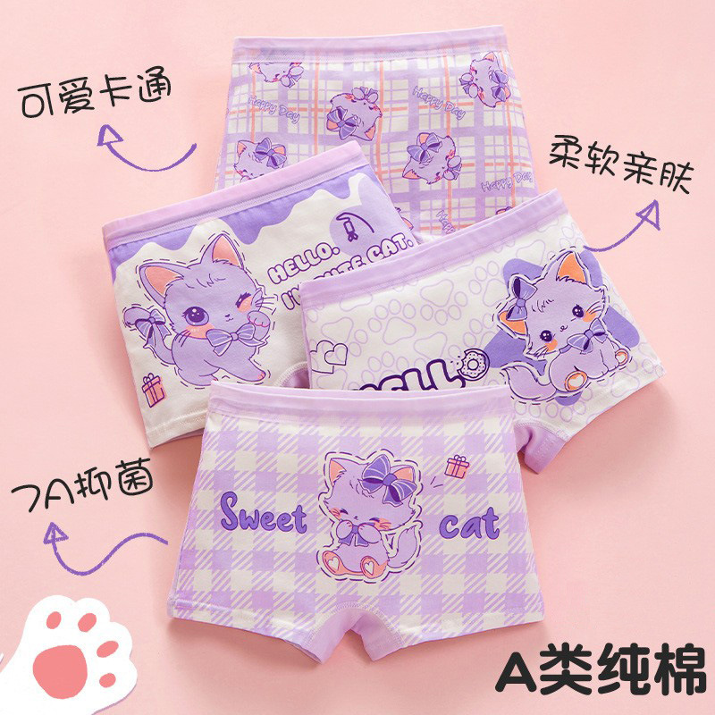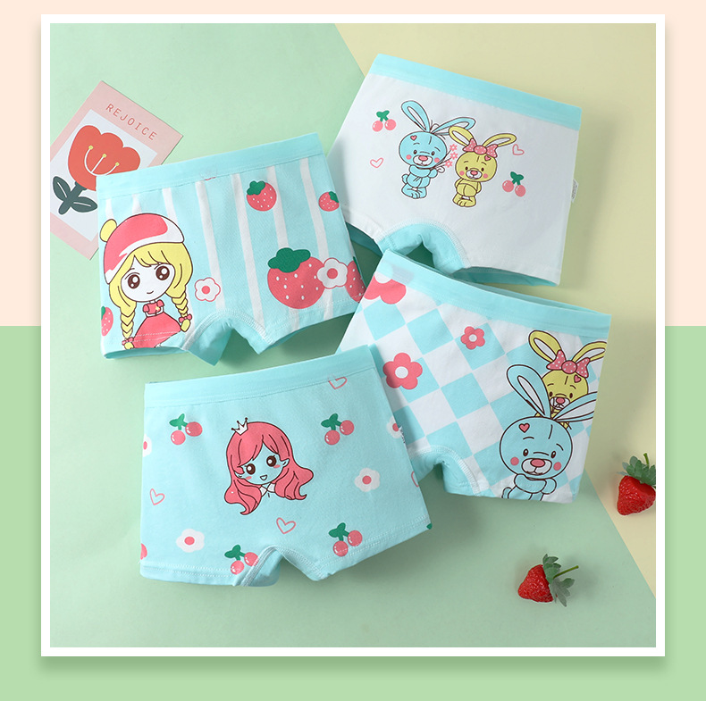 여아용 순면 만화 프린트 사각팬티, 중대형 아동, 학생, 유아용, 편안하고 통기성 좋은 아동용 순면 사각팬티스토어 가기