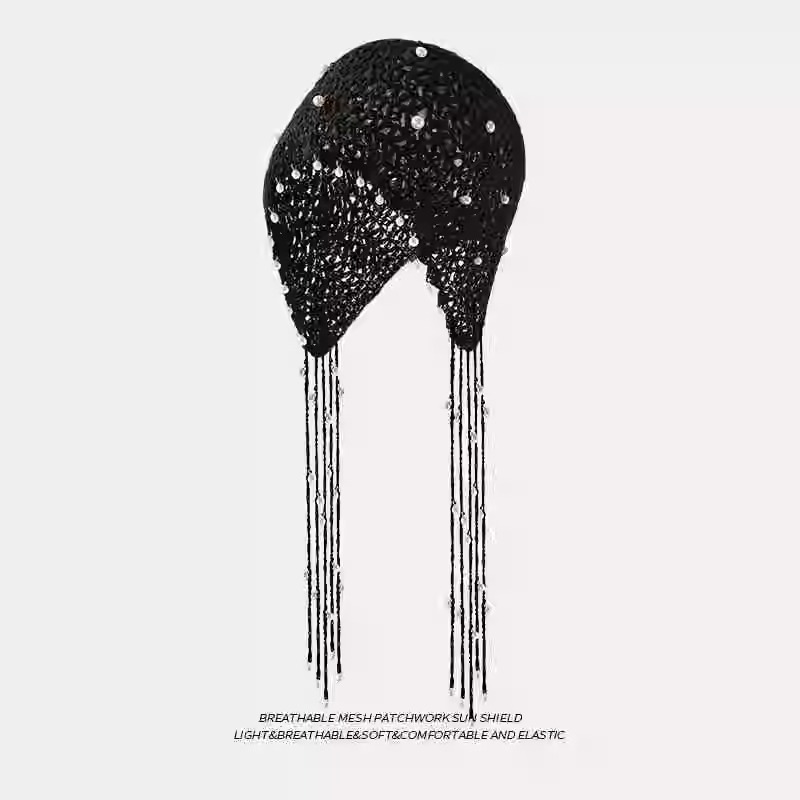 • 블랙 핸드메이드 진주 태슬 모자