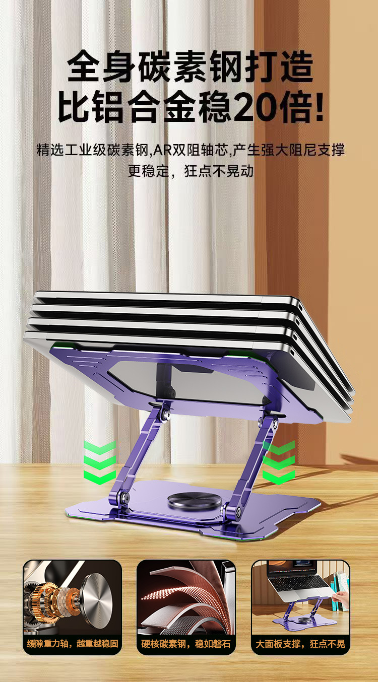 360도 회전식 탄소강 노트북 스탠드 패드 높이 태블릿 데스크탑 리프팅 높이 냉각 스탠드