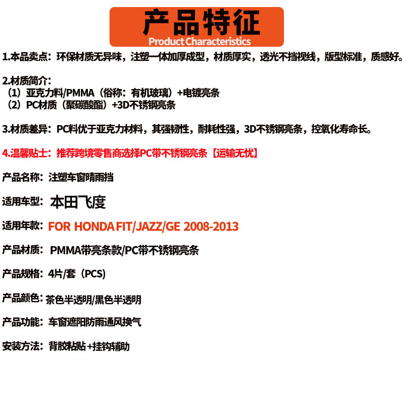혼다 피트 해치백 비 또는 빛 윈도우 바이저에 적합 HONDA FIT/JAZZ GE8/GE6 윈도우 바이저