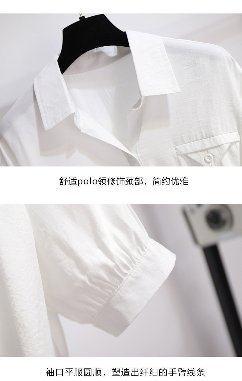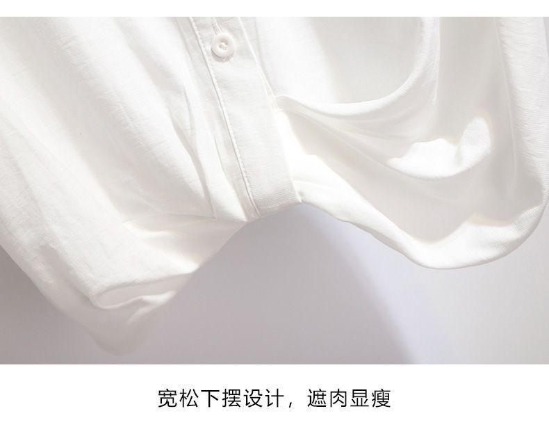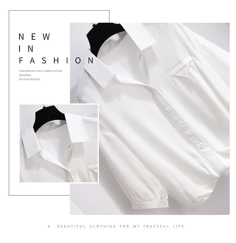 세븐 포인트 슬리브 아이스 실크 화이트 셔츠 여성의 여름 새로운 디자인 센스 틈새 유행 셔츠 올 매치 통근자 탑스토어 가기