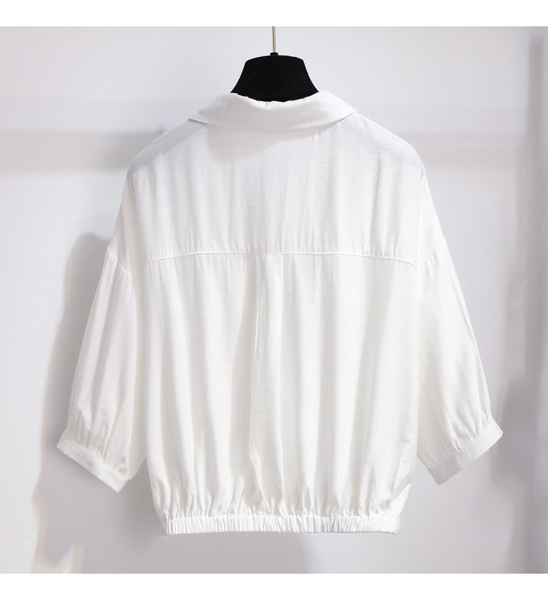 세븐 포인트 슬리브 아이스 실크 화이트 셔츠 여성의 여름 새로운 디자인 센스 틈새 유행 셔츠 올 매치 통근자 탑