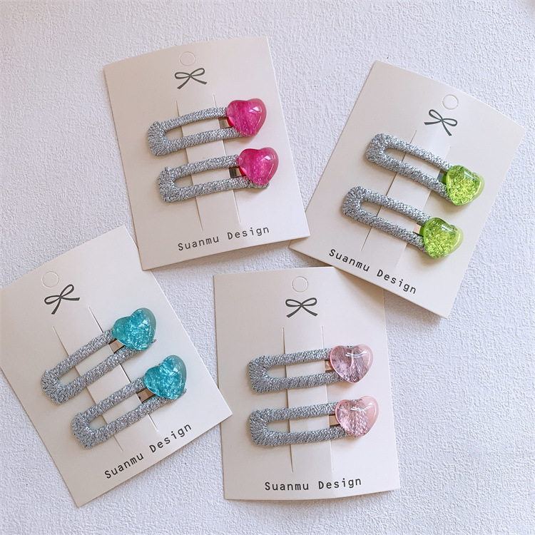 새로운 어린이 캔디 컬러 사랑 머리핀 귀여운 소녀 사이드 앞머리 클립 아기 머리 BB 클립 페어 머리핀
