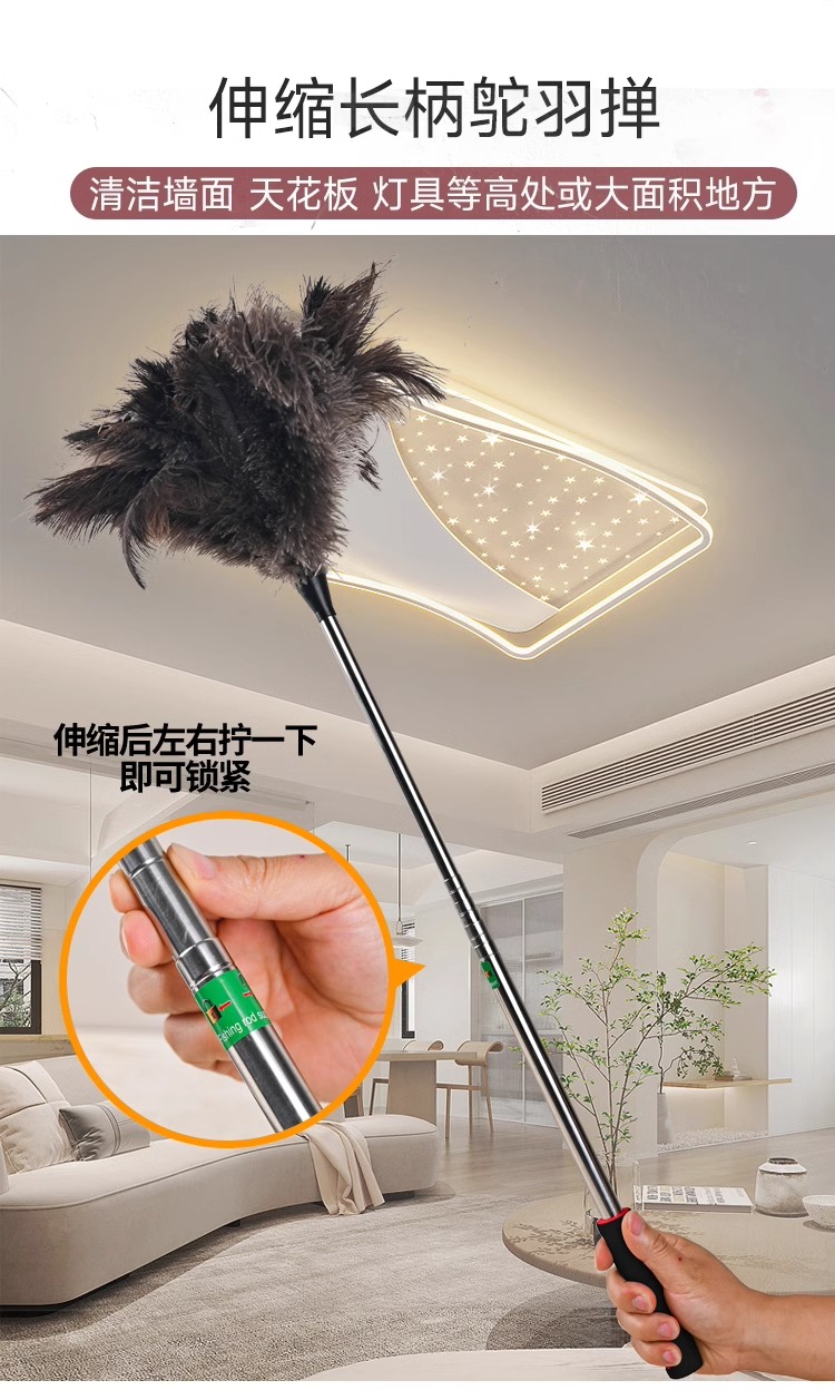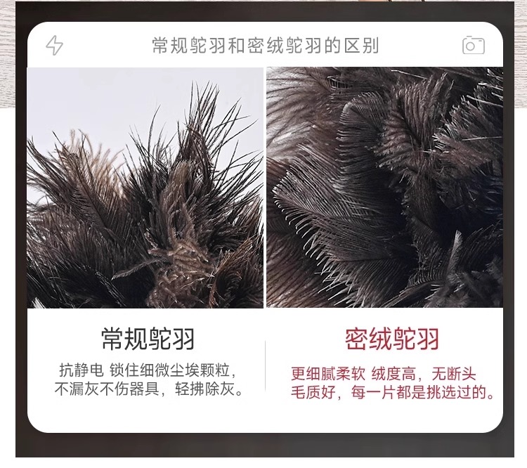 B & r 타조 깃털 먼지 제거 가정용 먼지 제거, 재 청소, 정전기 방지 차량 먼지 망원경 피아노 천장