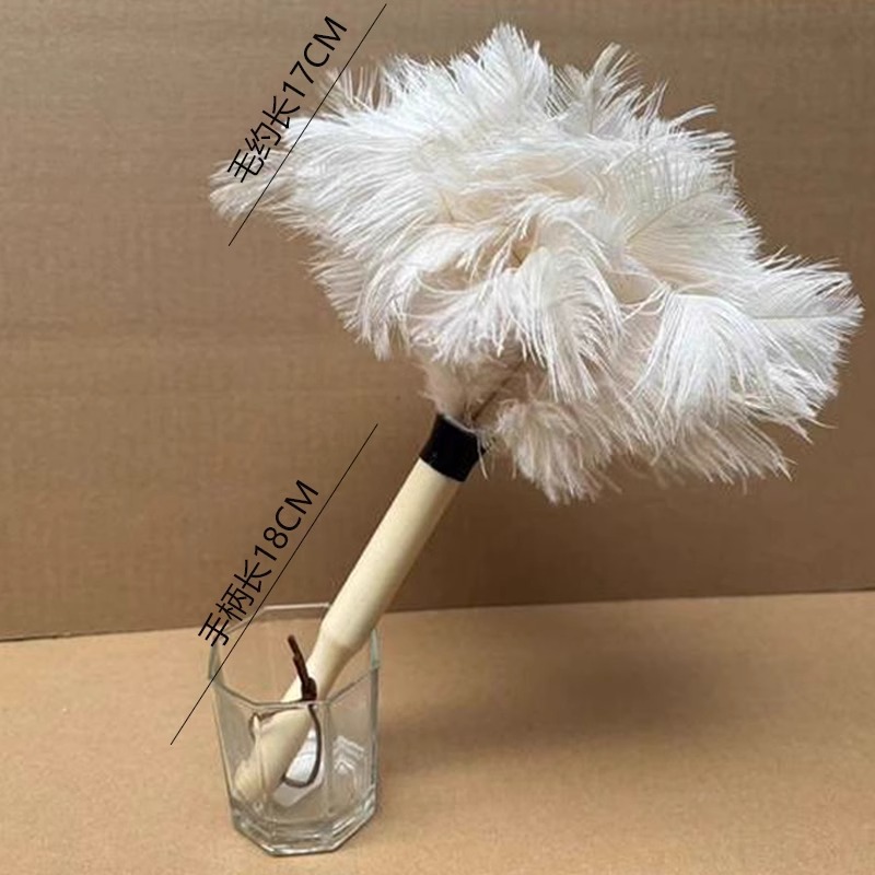 • 나무 손잡이가 달린 흰색 타조 깃털 먼지떨이 [약 35cm]
