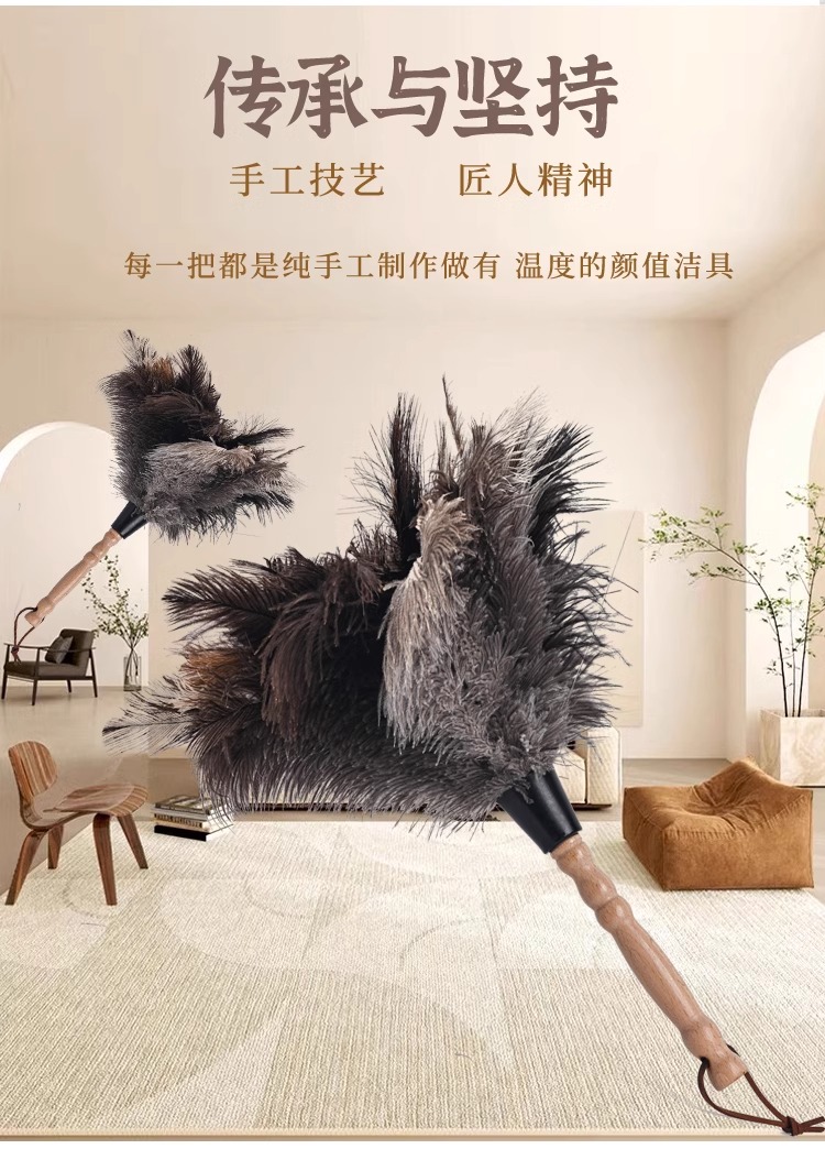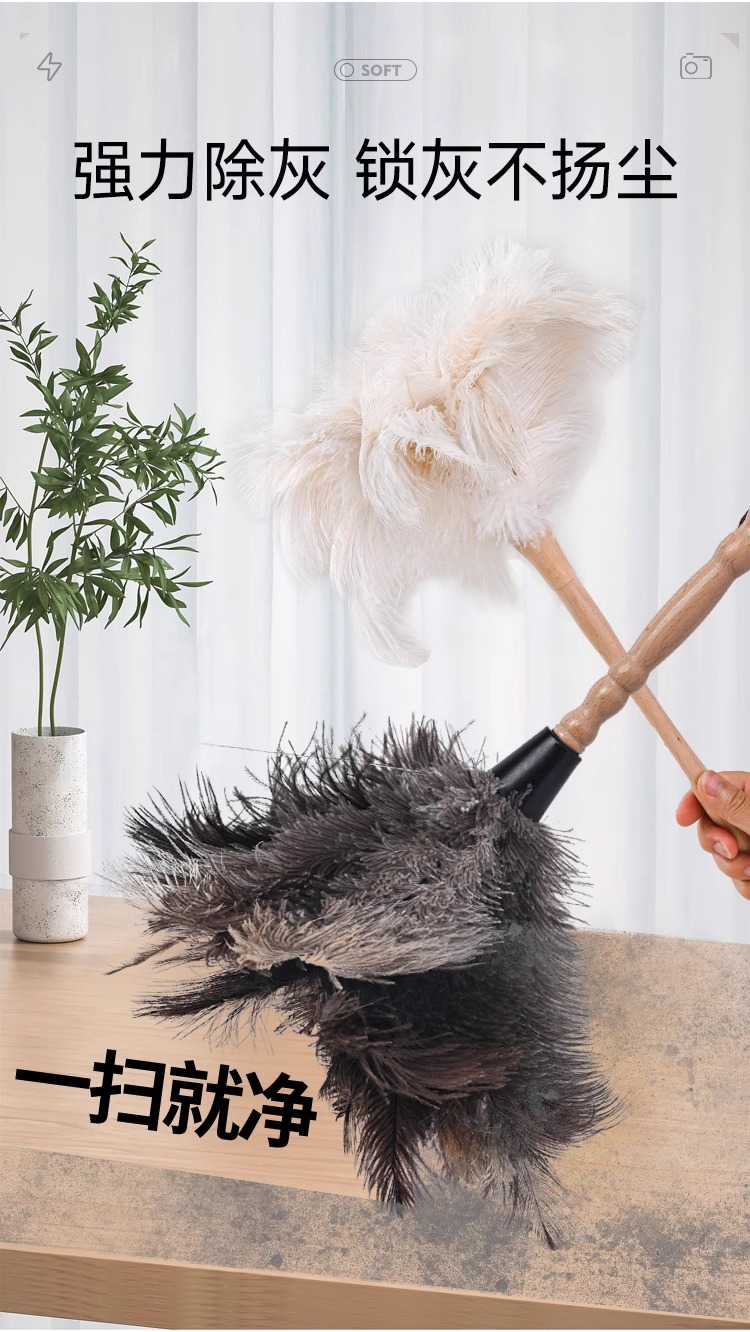 • 대형 너도밤나무 타조 깃털 먼지떨이 [약 53cm]