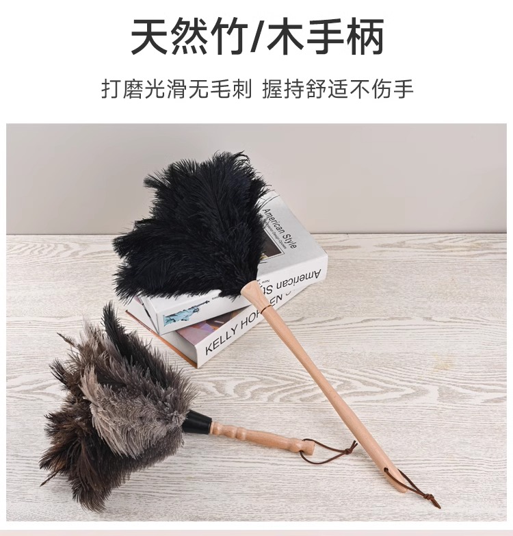 • 너도밤나무 검은 타조 깃털 먼지떨이 [약 53cm]
