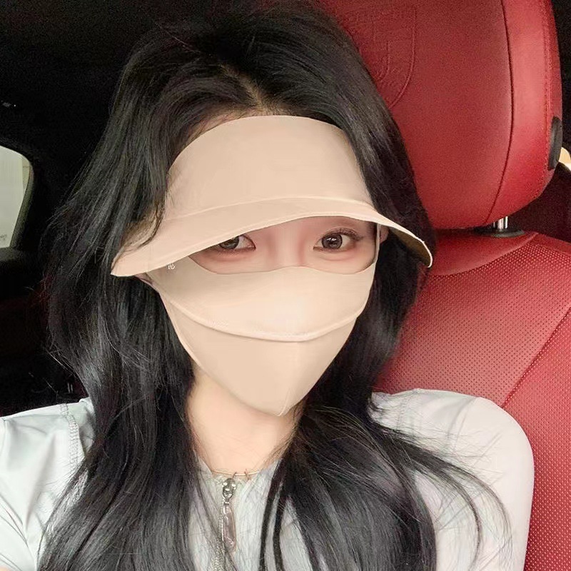 원피스 운전 아이스 실크 스테레오 야외 마스크 얼굴 지니 UV 보호 블랙 접착제 통기성 캡 얇은 여름 태양 보호스토어 가기