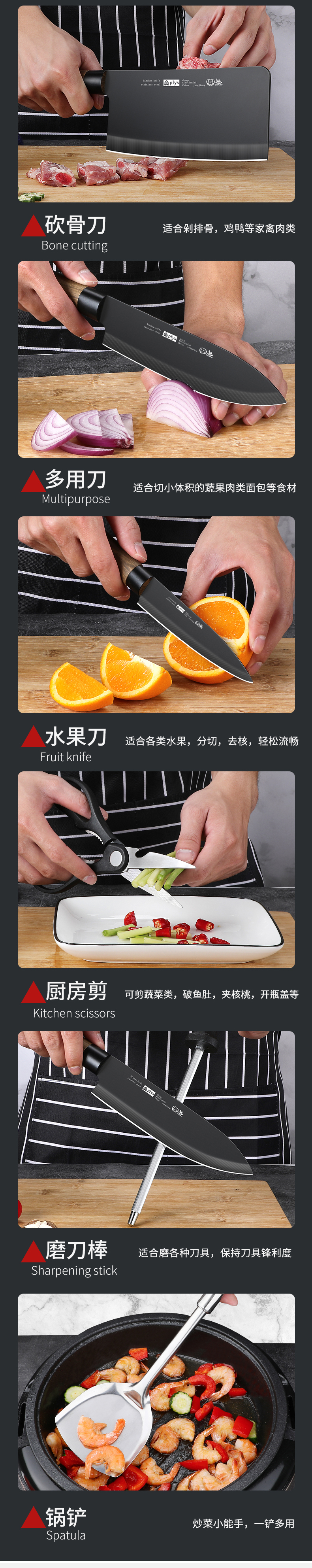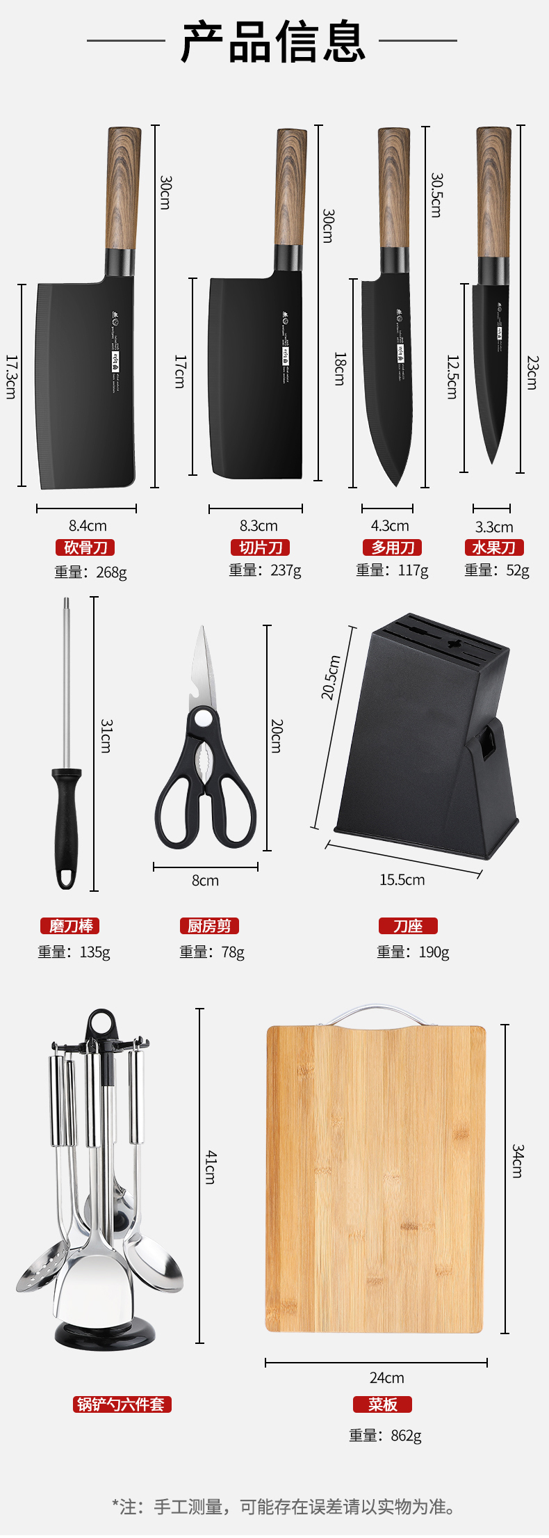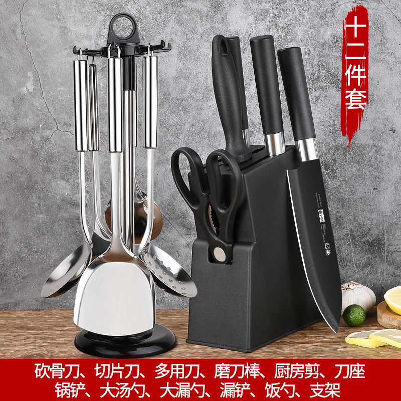 • ❀➹❈❈➹❀[녹 방지] 블랙 및 실버 칼 5종 세트 + 칼 홀더 + 주걱 및 스푼 풀 세트❀➹❈❈➹❀