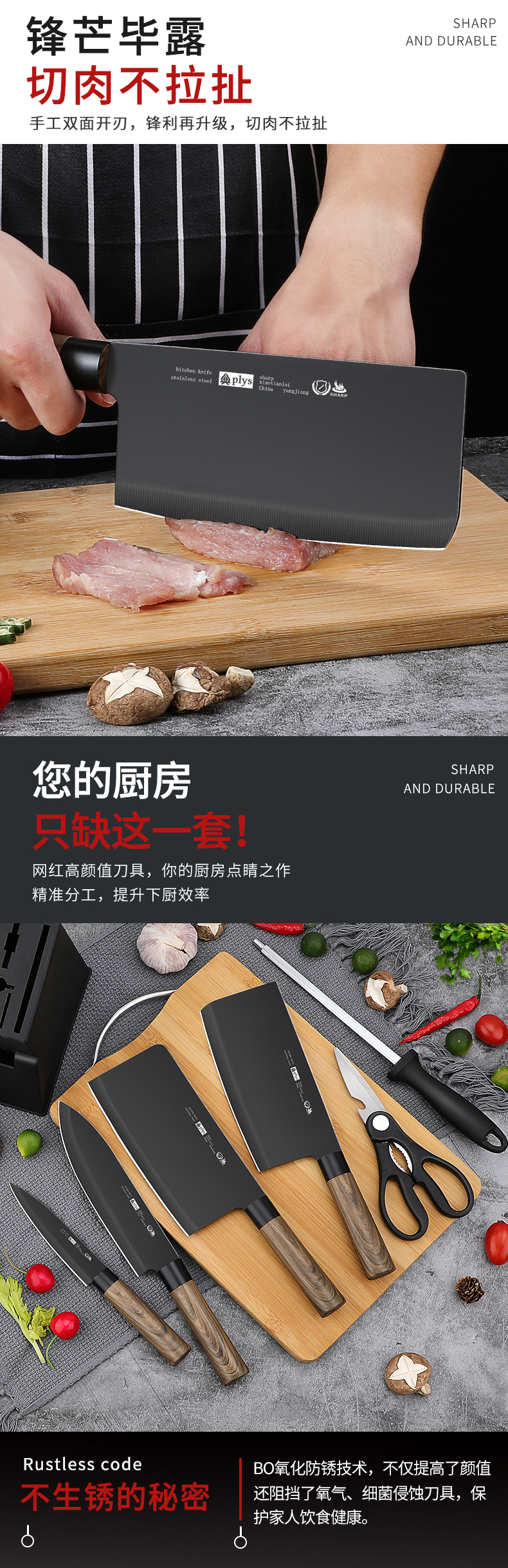 • ❀➹❈❈➹❀[방청] 블랙 & 실버 칼 5종 세트 + 칼 홀더 + 도마 + 주걱과 스푼 풀 세트❀➹❈❈➹❀
