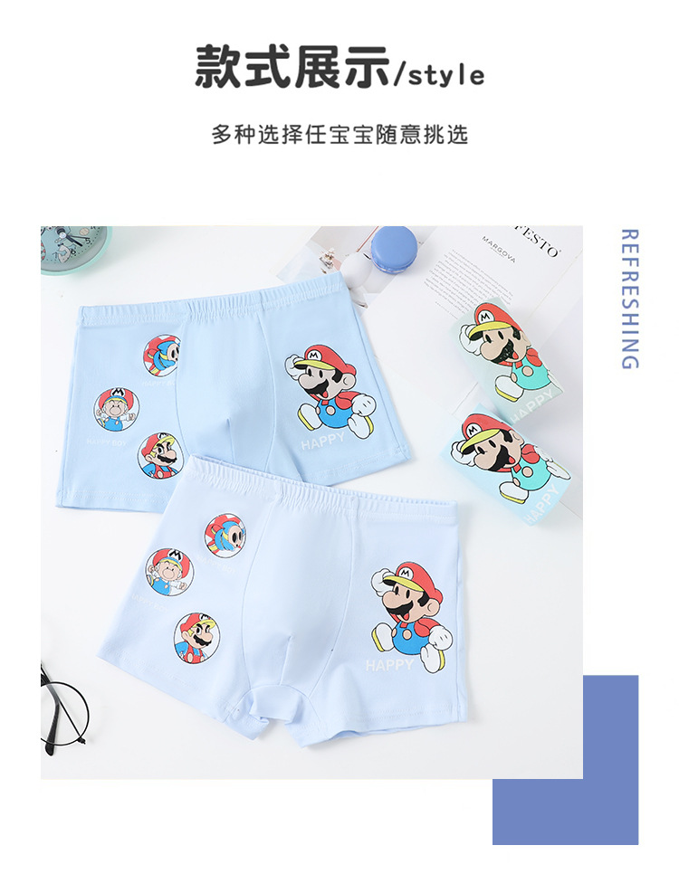 공장 직접 판매 어린이 속옷 새로운 초등 및 중등 학교 학생 아기 소년 복서 속옷 부드러운 통기성 및 편안한스토어 가기