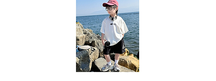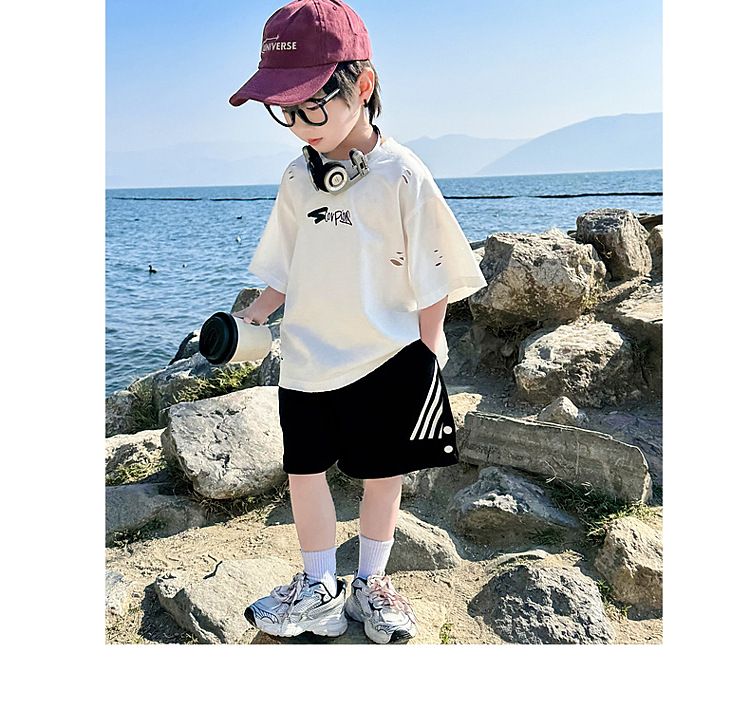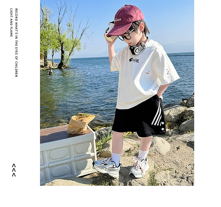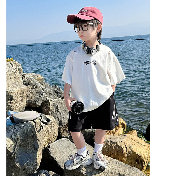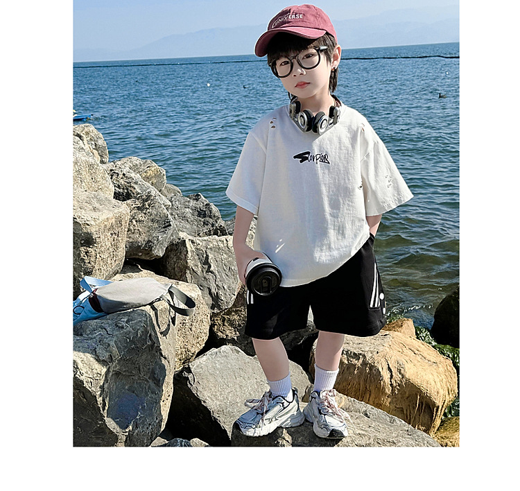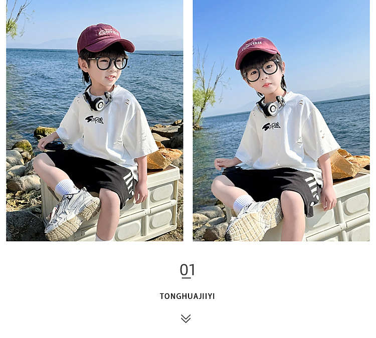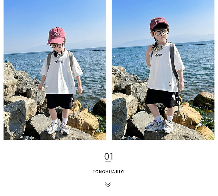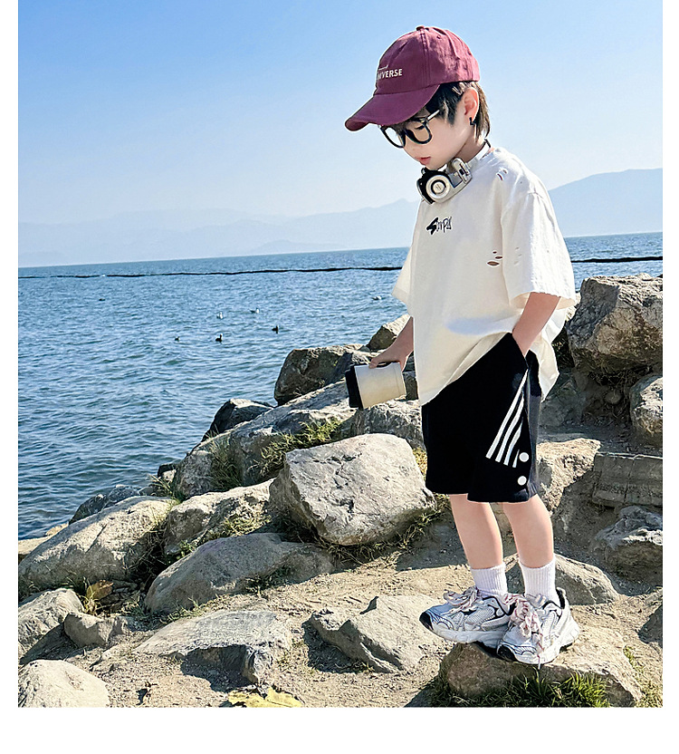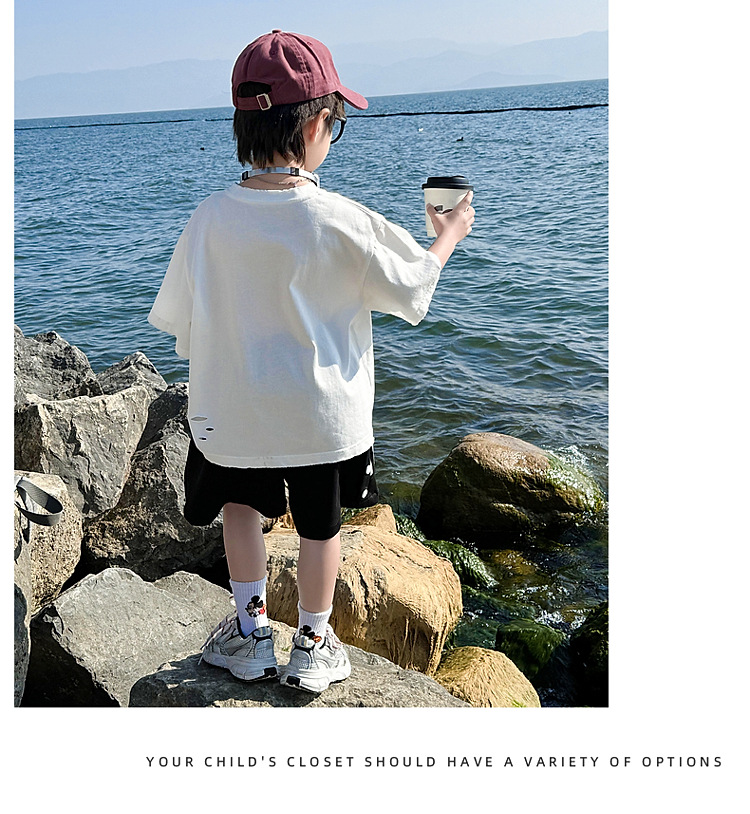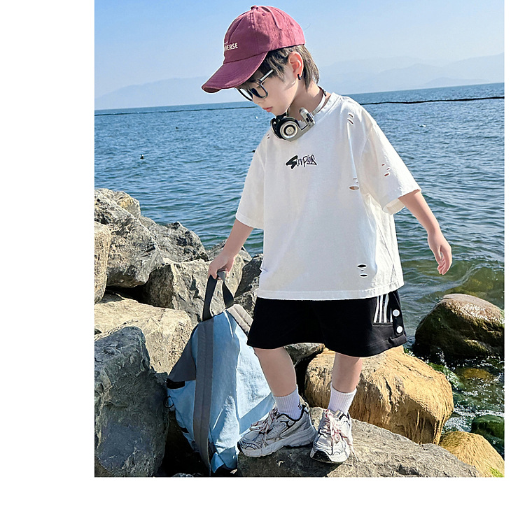 남자들의 여름 반팔 티셔츠 2025 새로운 어린이 여름 서양식 화이트 플루톤 핸섬 톱 보이즈의 느슨한 여름