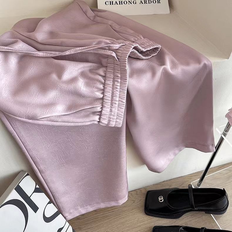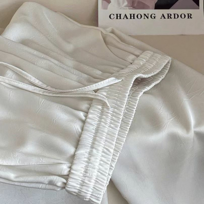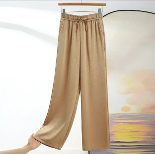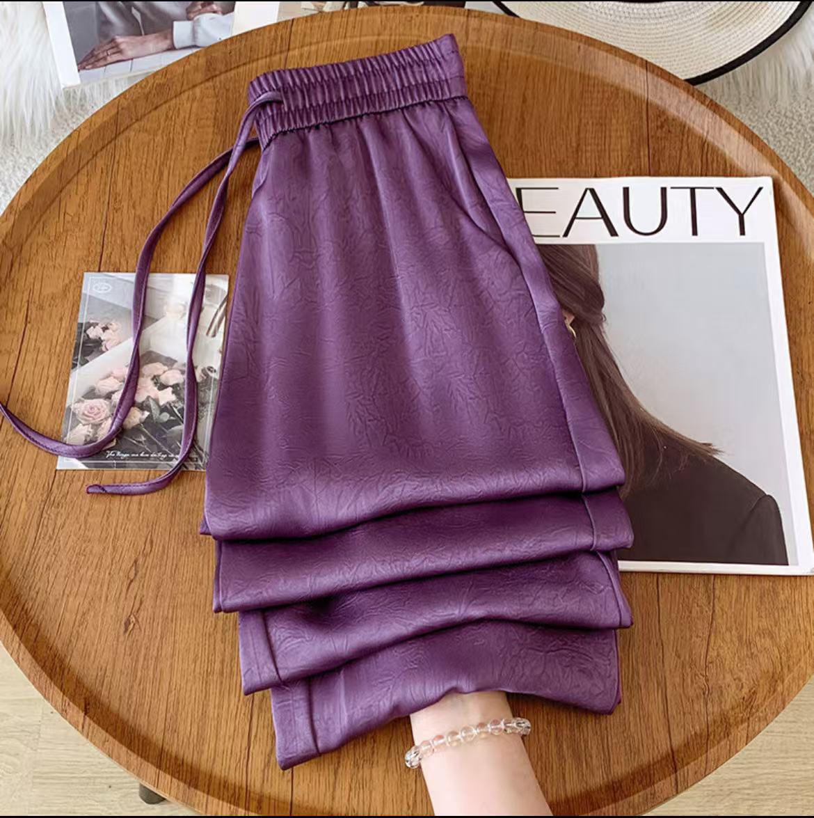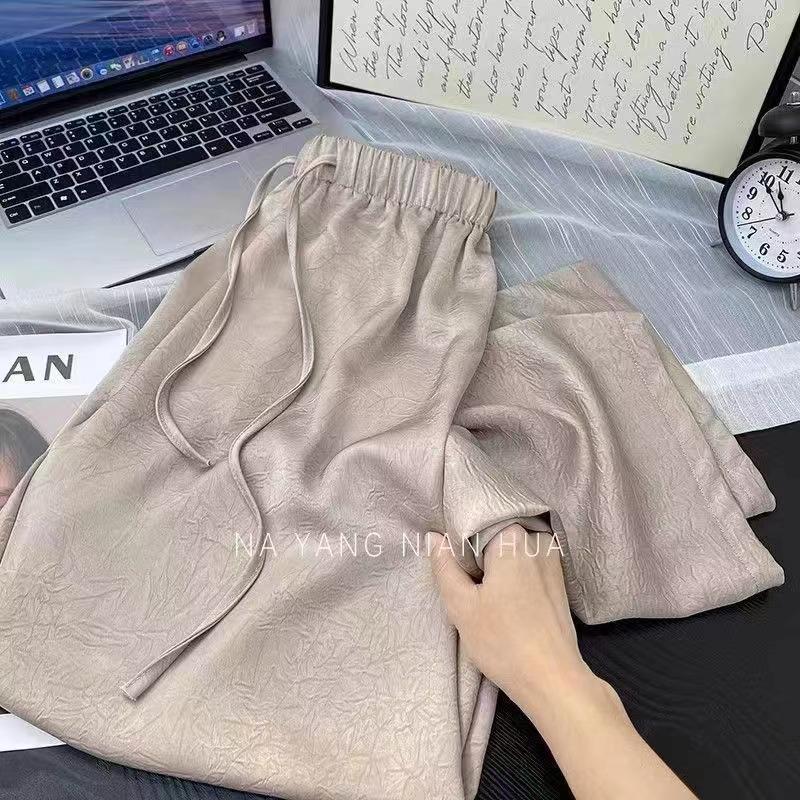 여성용 자카드 새틴 넓은 다리 바지 여름 얇은 새로운 중국 스타일 국가 스타일 높은 허리 아이스 실크 캐주얼 와이드 다리 바지