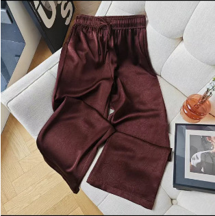 여성용 자카드 새틴 넓은 다리 바지 여름 얇은 새로운 중국 스타일 국가 스타일 높은 허리 아이스 실크 캐주얼 와이드 다리 바지스토어 가기