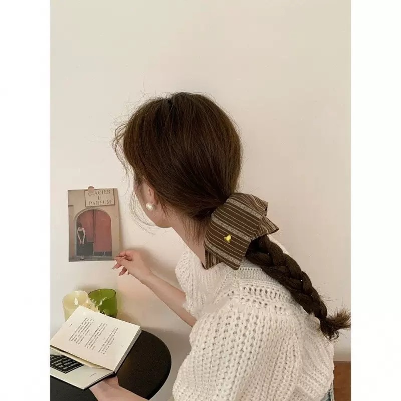 대형 내장 헤어 링 사랑 골드 라벨 줄무늬 스퀘어 헤어 링 원단 높은 크랜얼 탑 헤어 밴드 여성용 헤어 액세서리