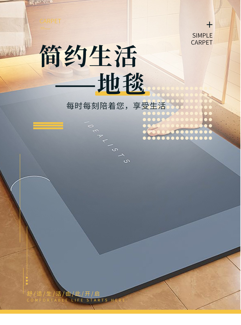 Temu Daifa 국경 단순 Diatom 진흙 먼지 방지 내마모성 매트 욕실 흡수성 미끄럼 방지 퀵 건조 풋 매트 재고스토어 가기