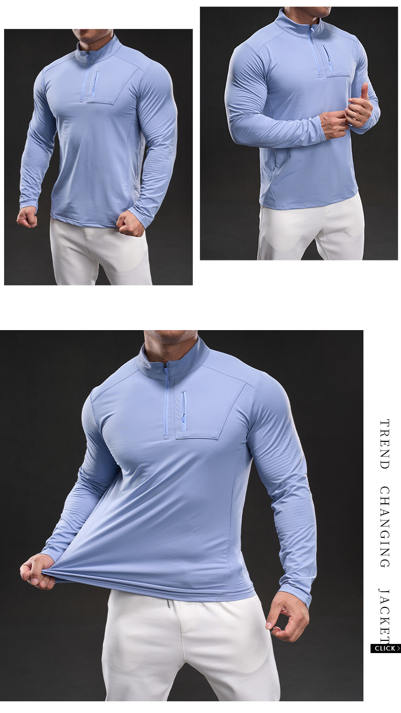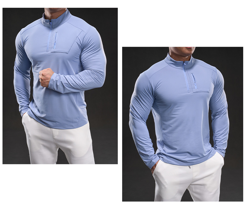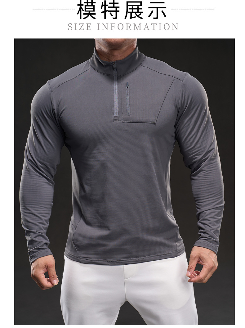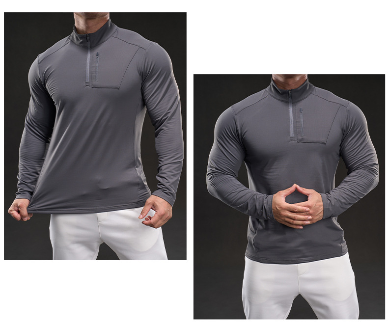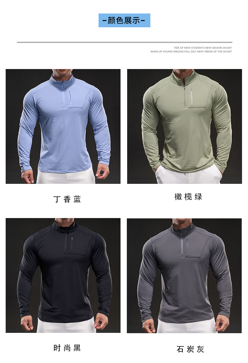하프 지퍼 봄, 가을 탄성 속건성 긴팔 트레이닝 복 스포츠 및 레저 러닝 피트니스 통기성 티셔츠 유명 교체스토어 가기