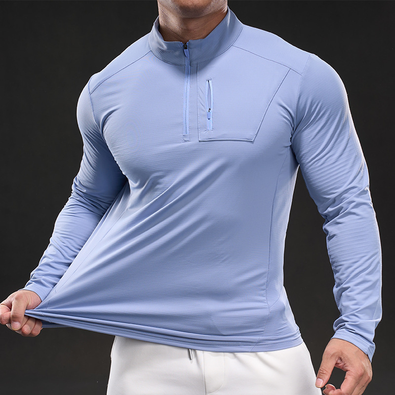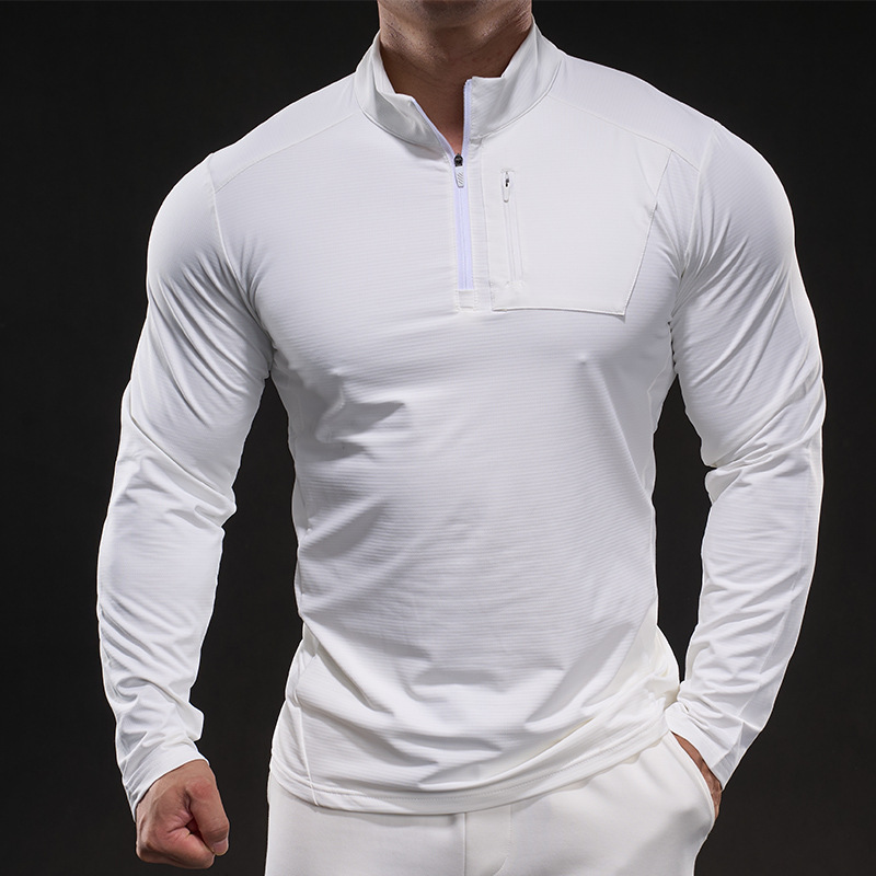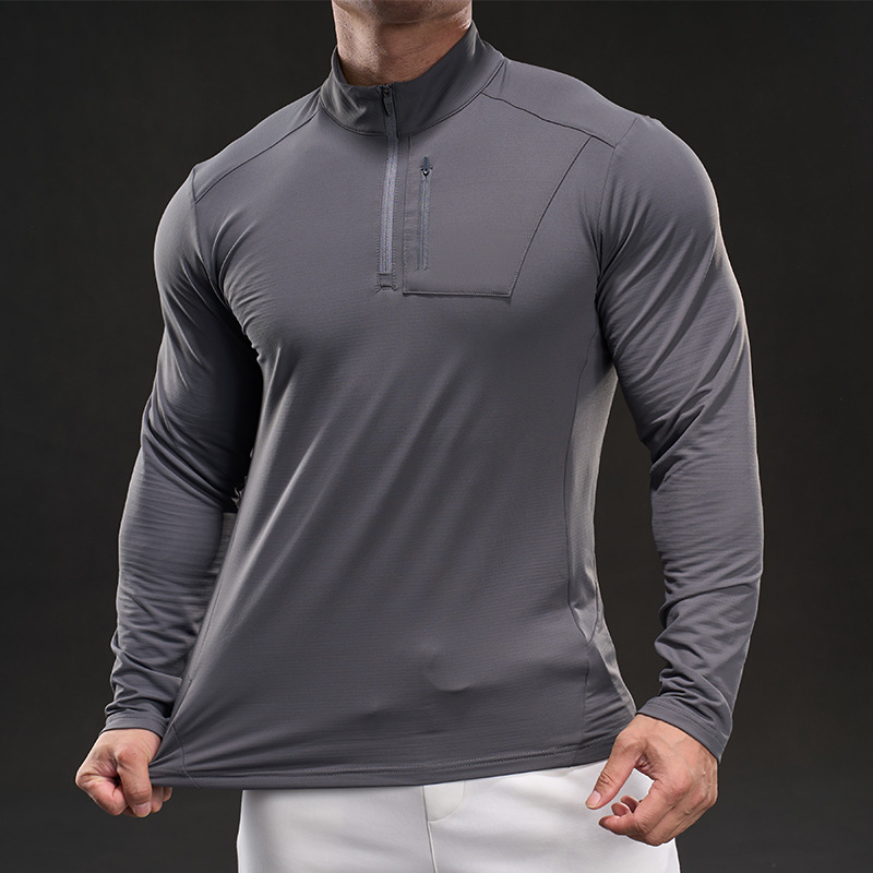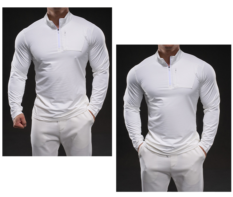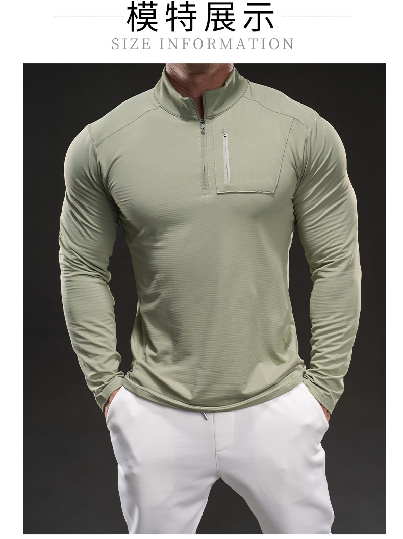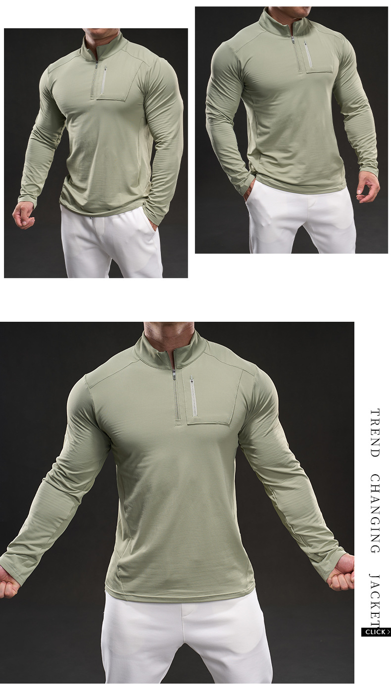하프 지퍼 봄, 가을 탄성 속건성 긴팔 트레이닝 복 스포츠 및 레저 러닝 피트니스 통기성 티셔츠 유명 교체스토어 가기