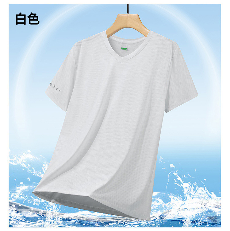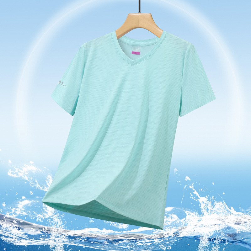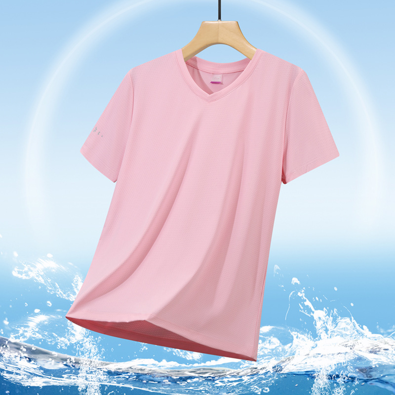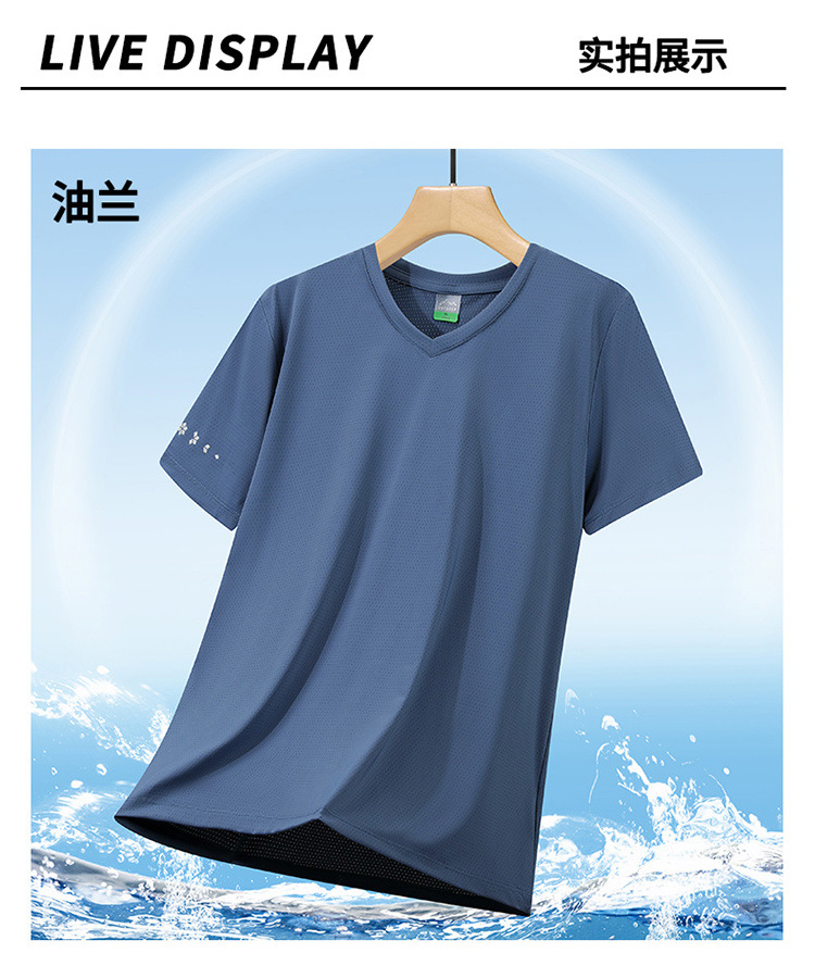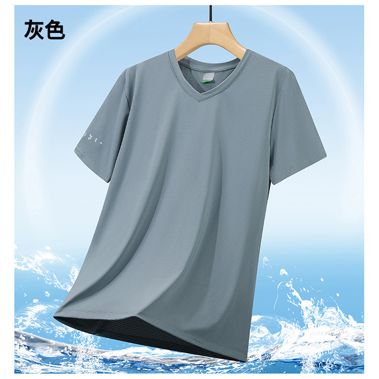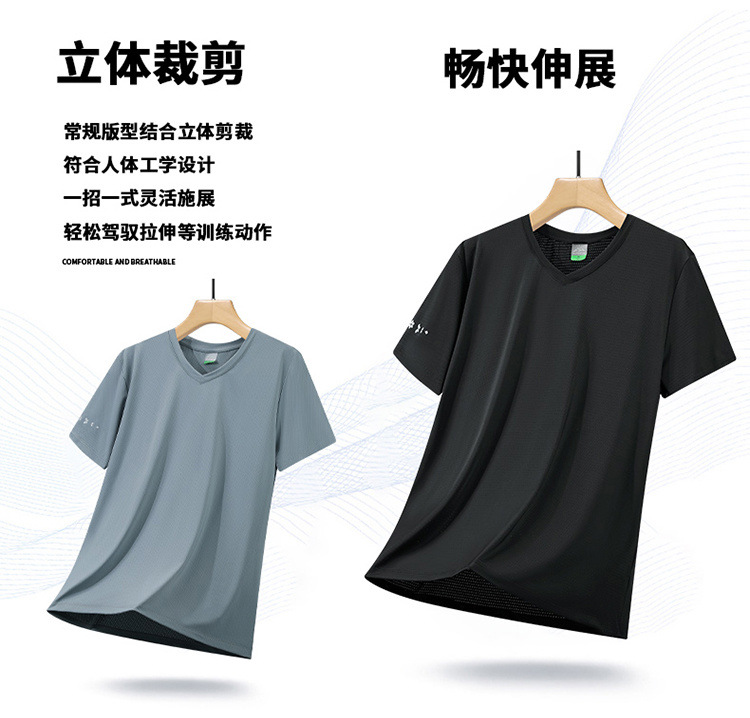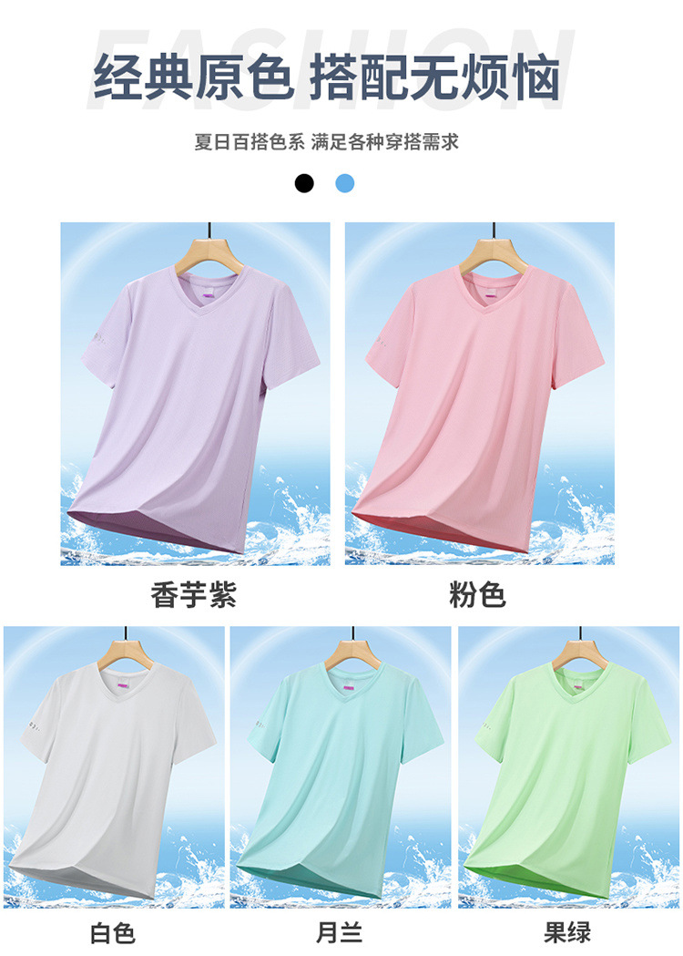 여름 반소매 아이스 실크 티셔츠 남성 커플 빠른 건조 티셔츠 여성용 통기성 V 넥 스포츠 반팔 스트레치 캐주얼 반소매 의류스토어 가기