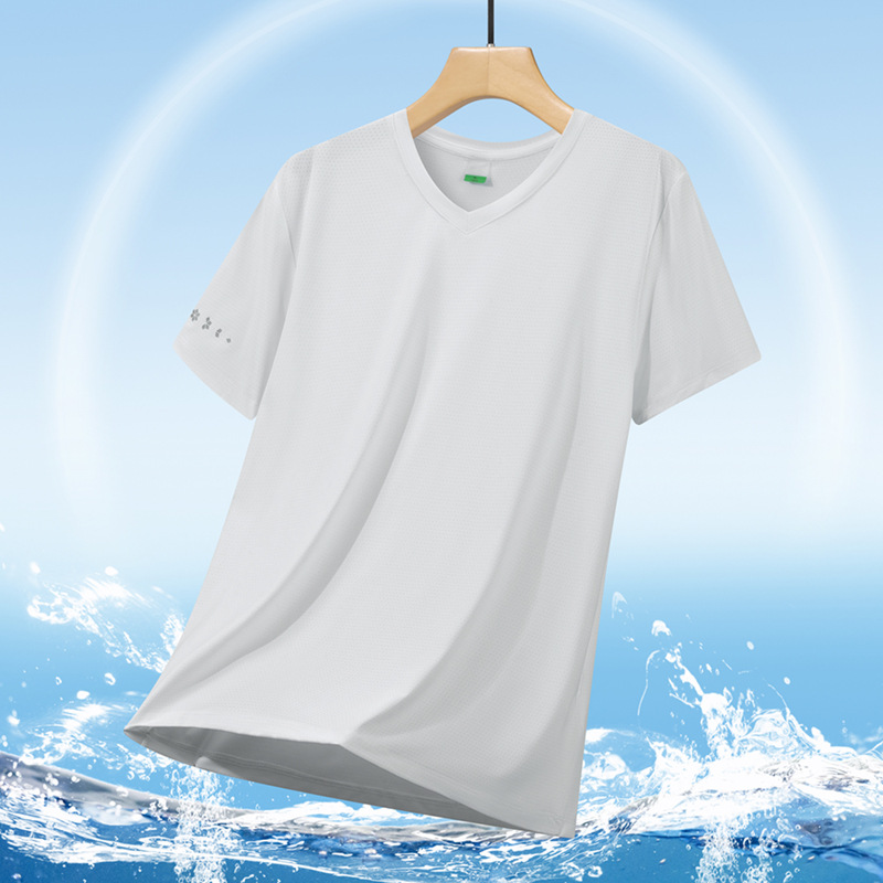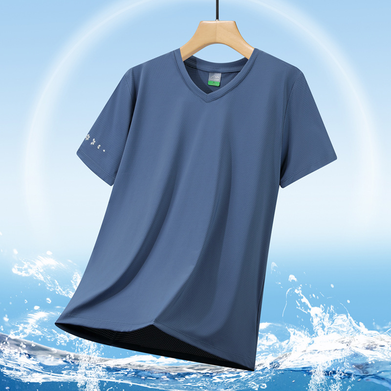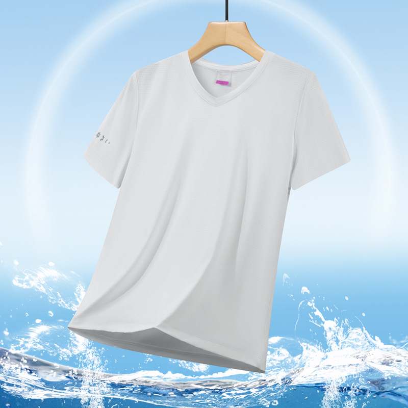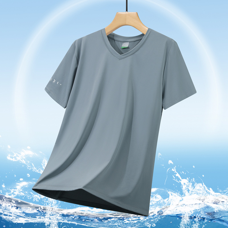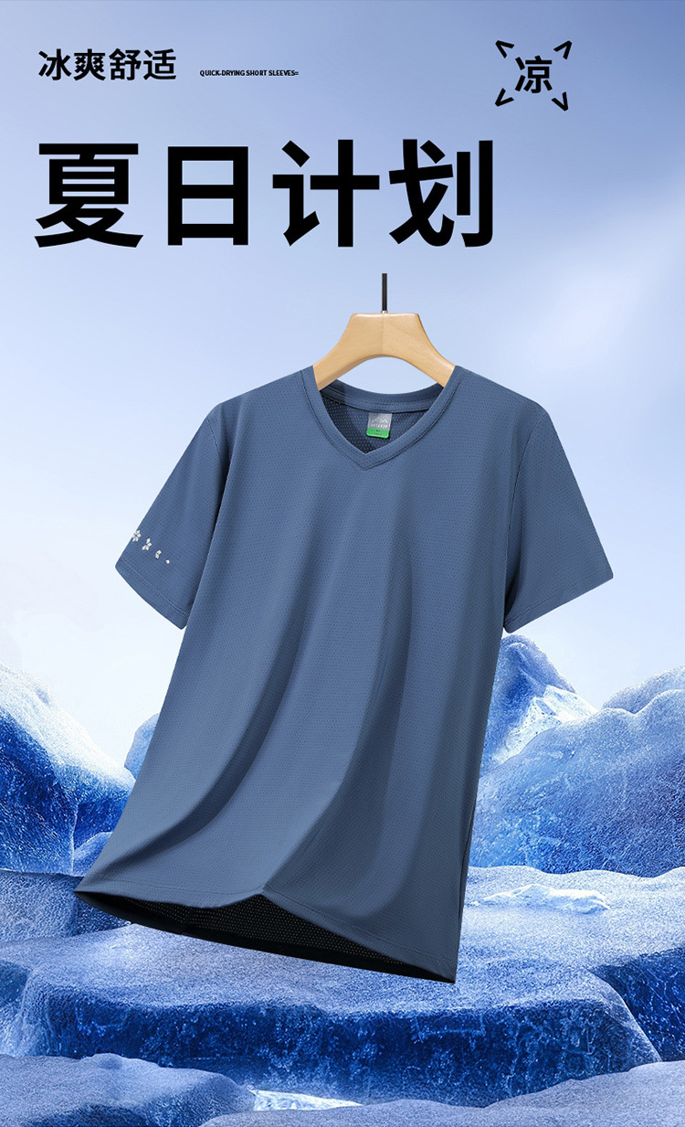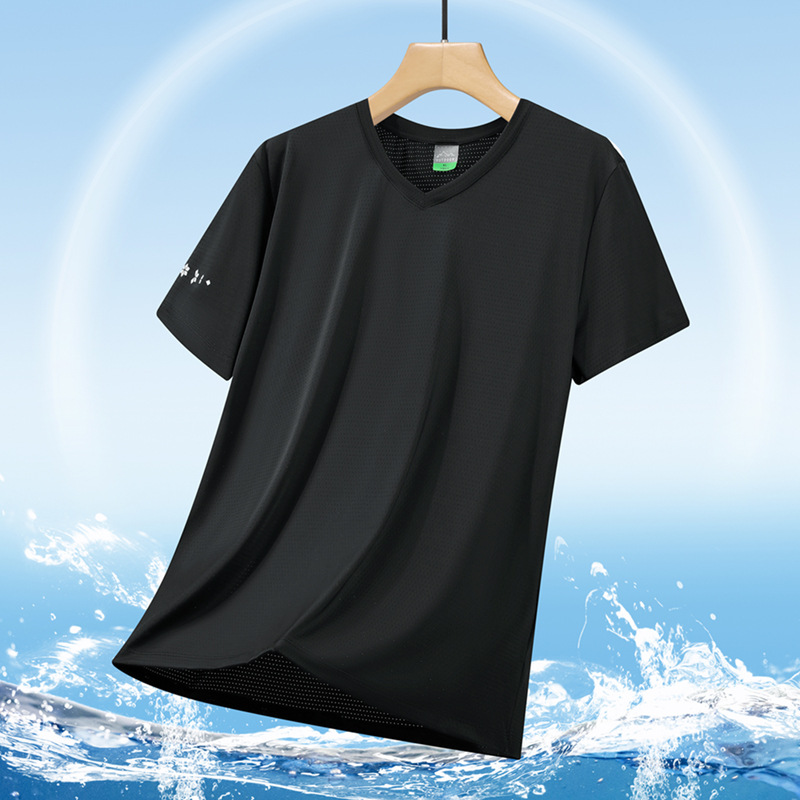 여름 반소매 아이스 실크 티셔츠 남성 커플 빠른 건조 티셔츠 여성용 통기성 V 넥 스포츠 반팔 스트레치 캐주얼 반소매 의류스토어 가기