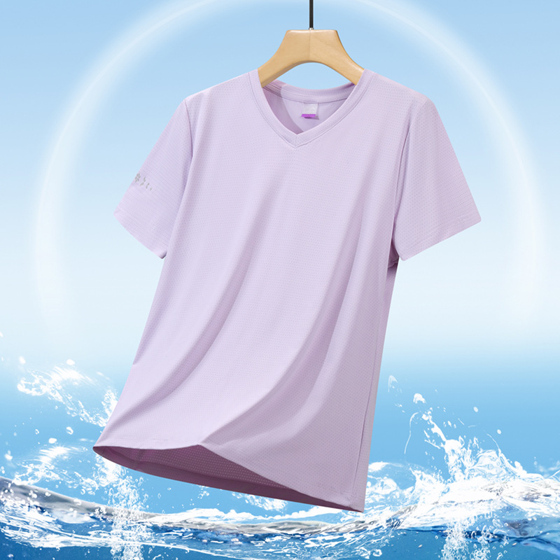 여름 반소매 아이스 실크 티셔츠 남성 커플 빠른 건조 티셔츠 여성용 통기성 V 넥 스포츠 반팔 스트레치 캐주얼 반소매 의류