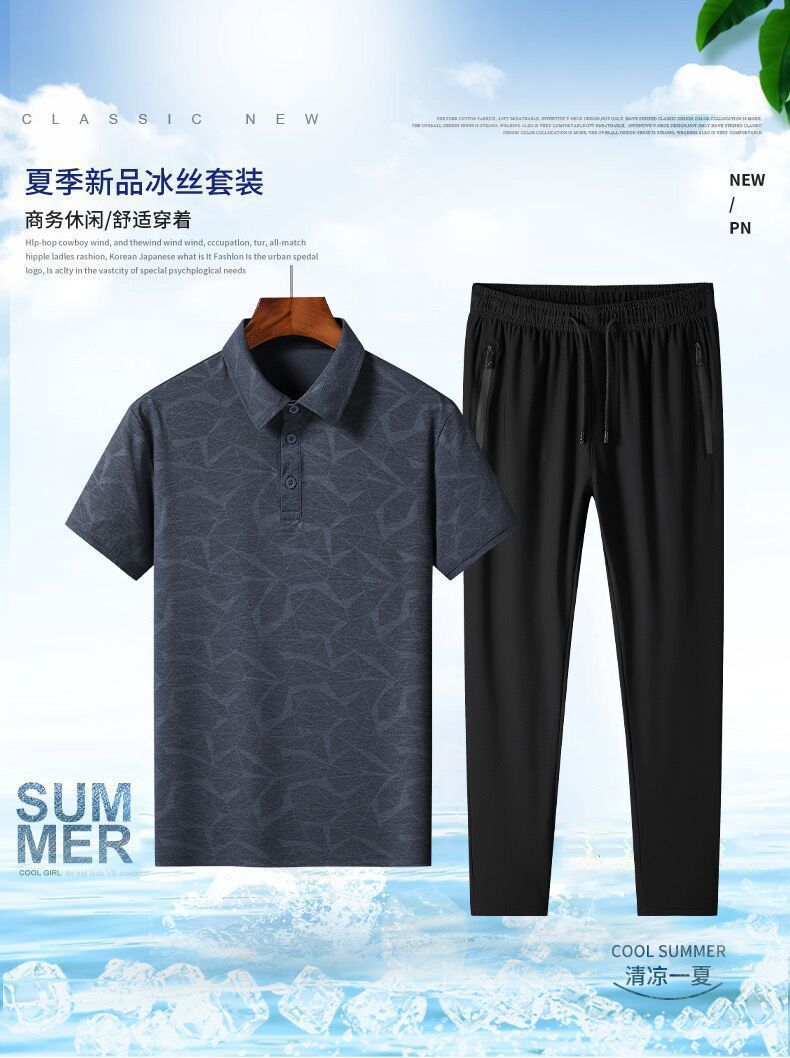 세트 아이스 실크 반팔 셔츠 남자 아버지 셔츠 여름 중년 노인 캐주얼 스포츠 세트 남자 아버지 여름 원피스스토어 가기