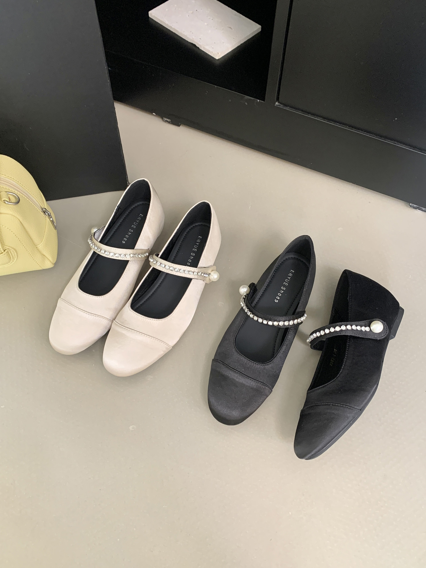 3cm 프랑스 새틴 신발 부드러운 여인과 스커트 둥근 발가락 작은 신발스토어 가기