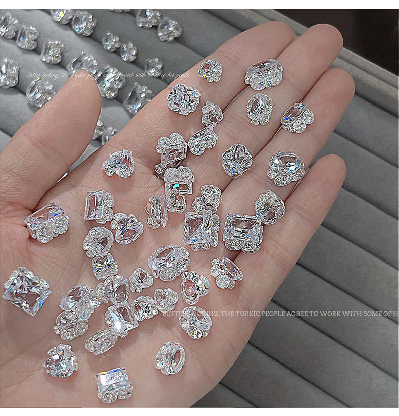 네일 쥬얼리 플래시 투명 특수 모양의 지르콘 파일 드릴 높은 제품 직사각형 지방 사각 암석 설탕 드릴 네일 장식품 도매스토어 가기