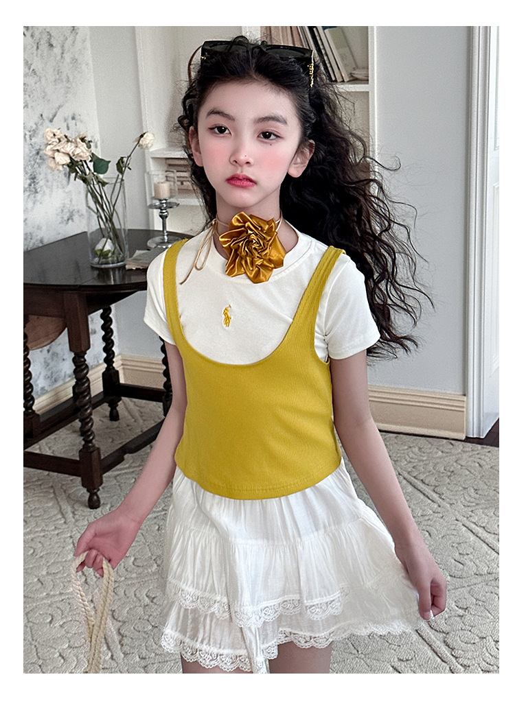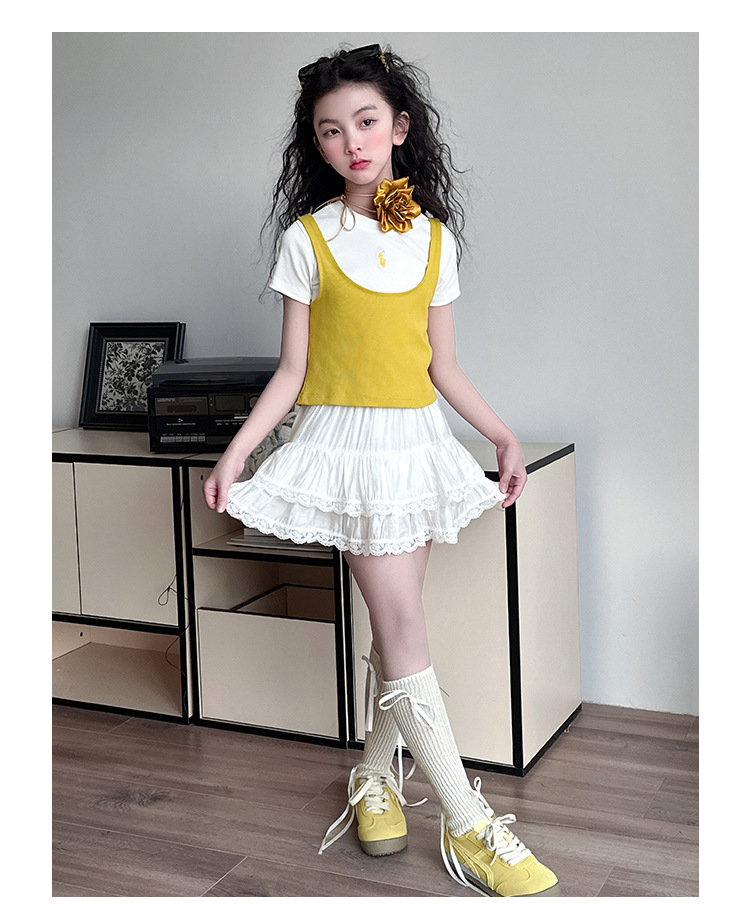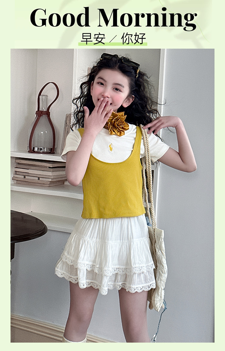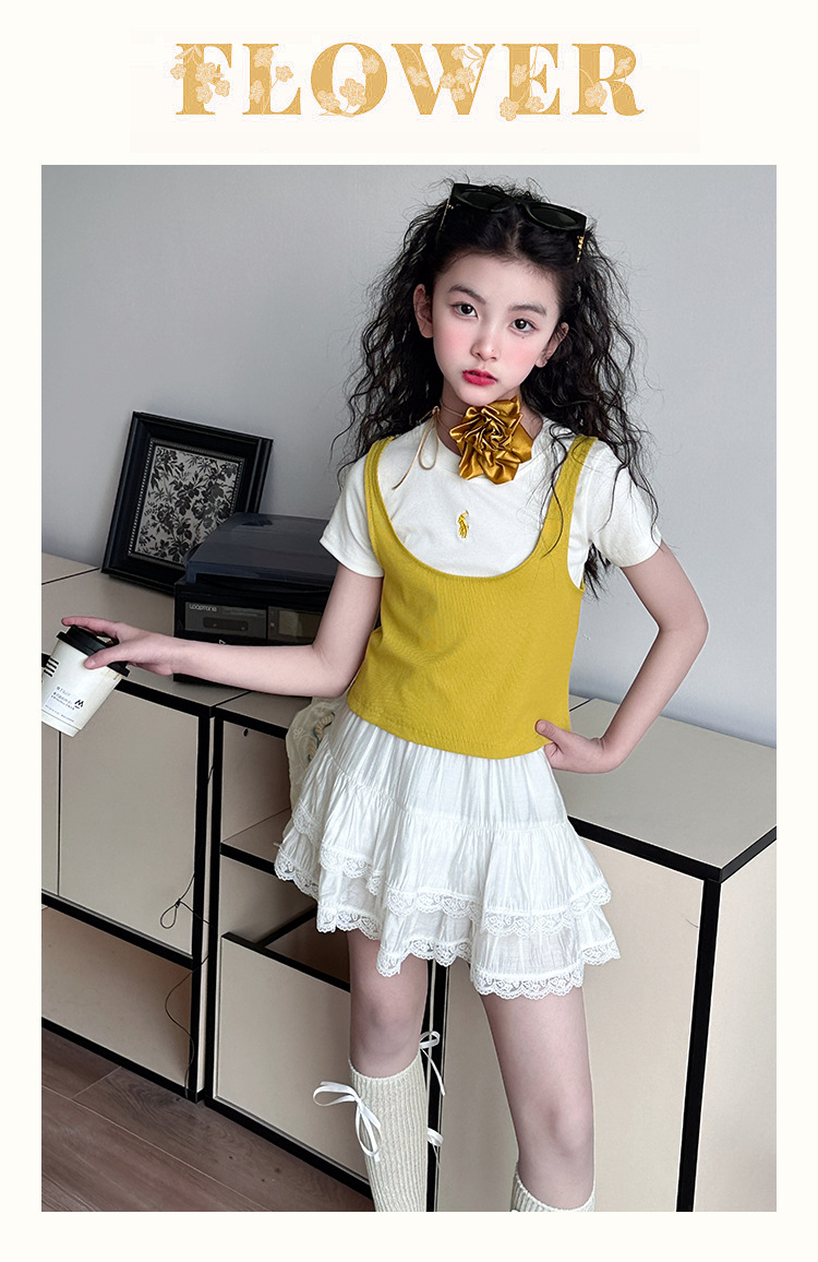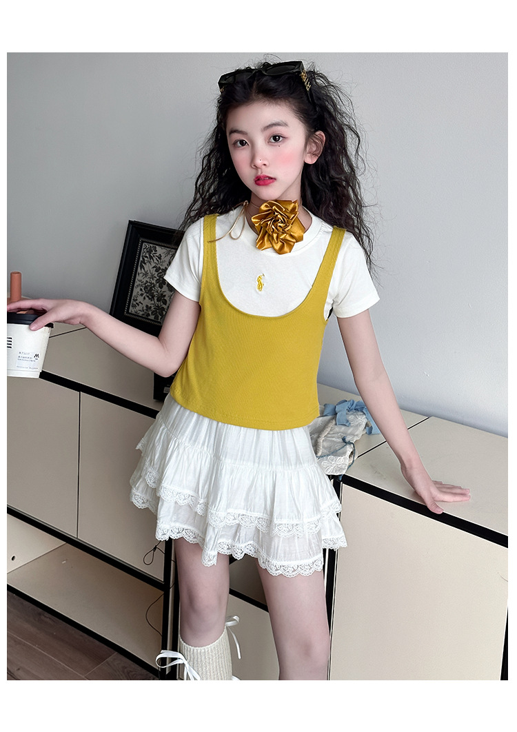국경 간 소녀 도파민 세트 2025 여름 새로운 스타일 유행 가짜 투피스 탑 레이스 투피스 스커트스토어 가기
