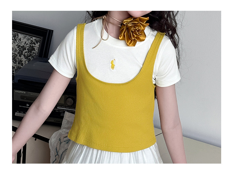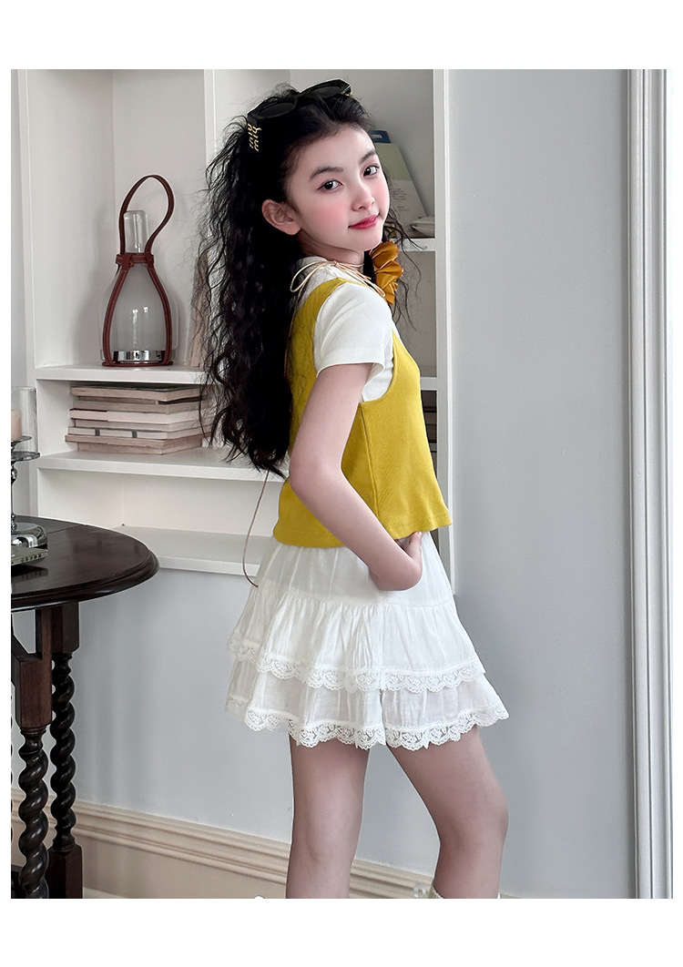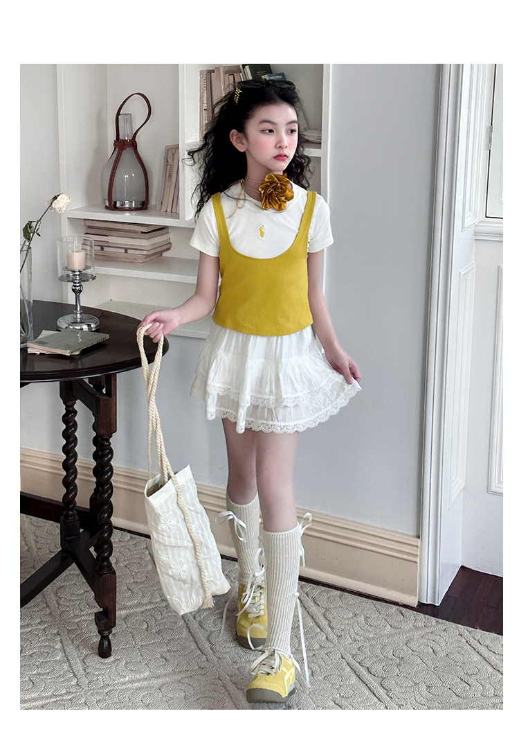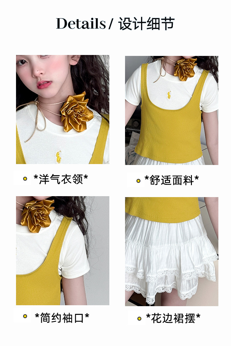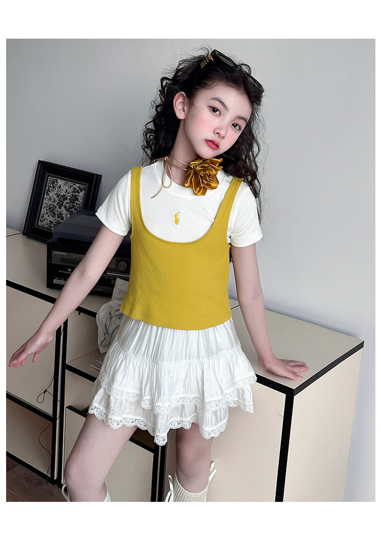 국경 간 소녀 도파민 세트 2025 여름 새로운 스타일 유행 가짜 투피스 탑 레이스 투피스 스커트스토어 가기