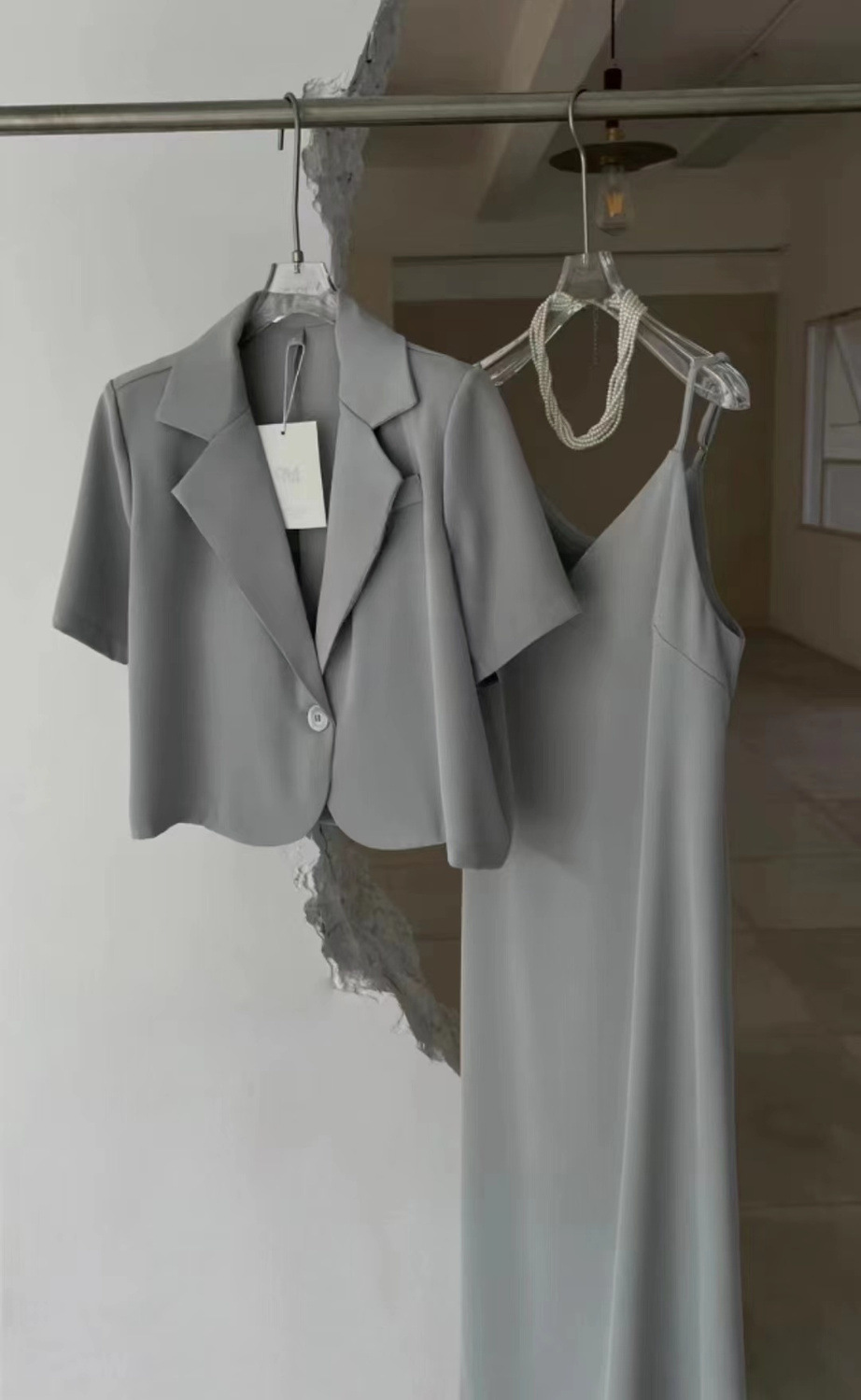 튀긴 거리 반팔 세트 자켓 여자 얇은 2025 년 여름 새 한국식, 느슨한 짧은 캐주얼 작은 세트스토어 가기