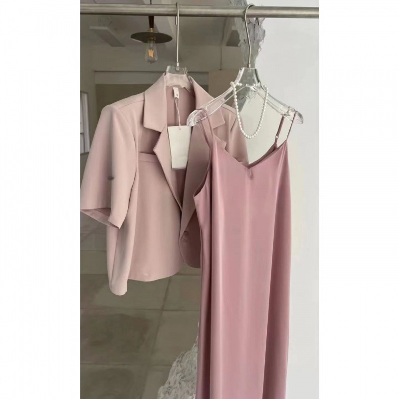 튀긴 거리 반팔 세트 자켓 여자 얇은 2025 년 여름 새 한국식, 느슨한 짧은 캐주얼 작은 세트