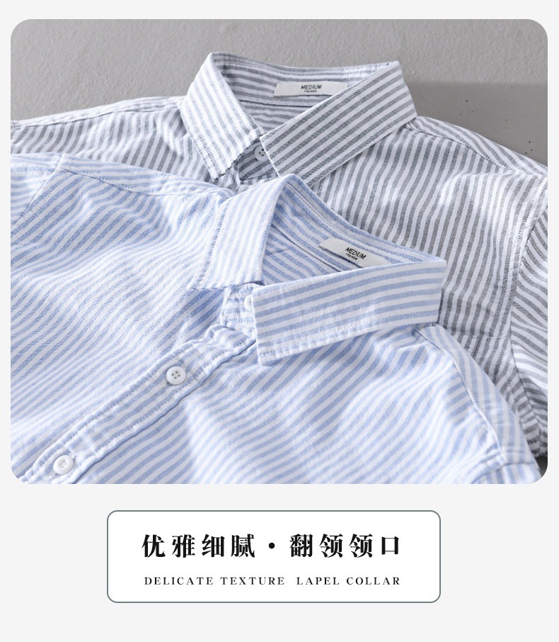 여름 남성 옥스포드 스트라이프 긴팔 셔츠 트렌디 캐주얼 루즈 다재다능한 신선하고 심플한 남성 셔츠 재킷스토어 가기