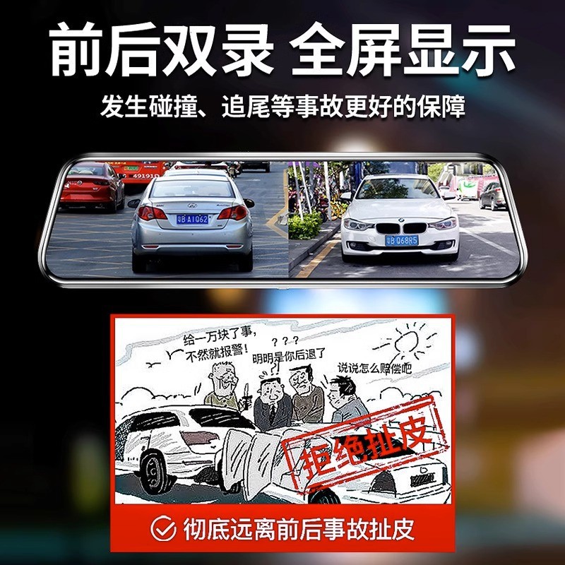 2024 새로운 라인없는 전체 화면 스트리밍 미디어 백미러 드라이브 레코더 전면 및 후면 더블 샷 반전 이미지 생성