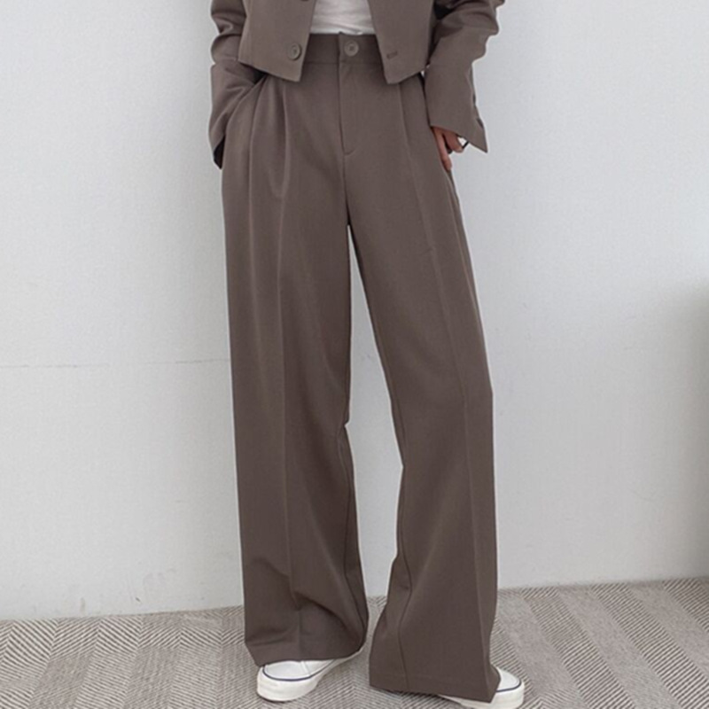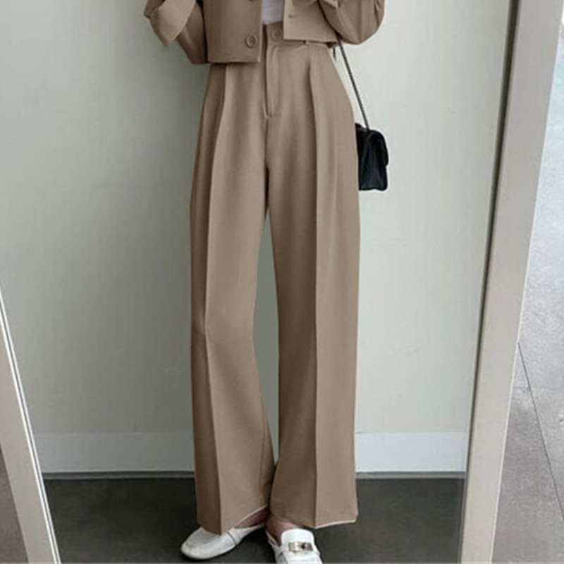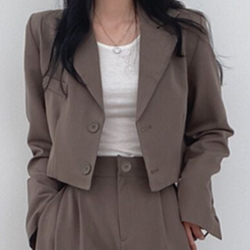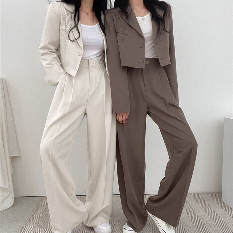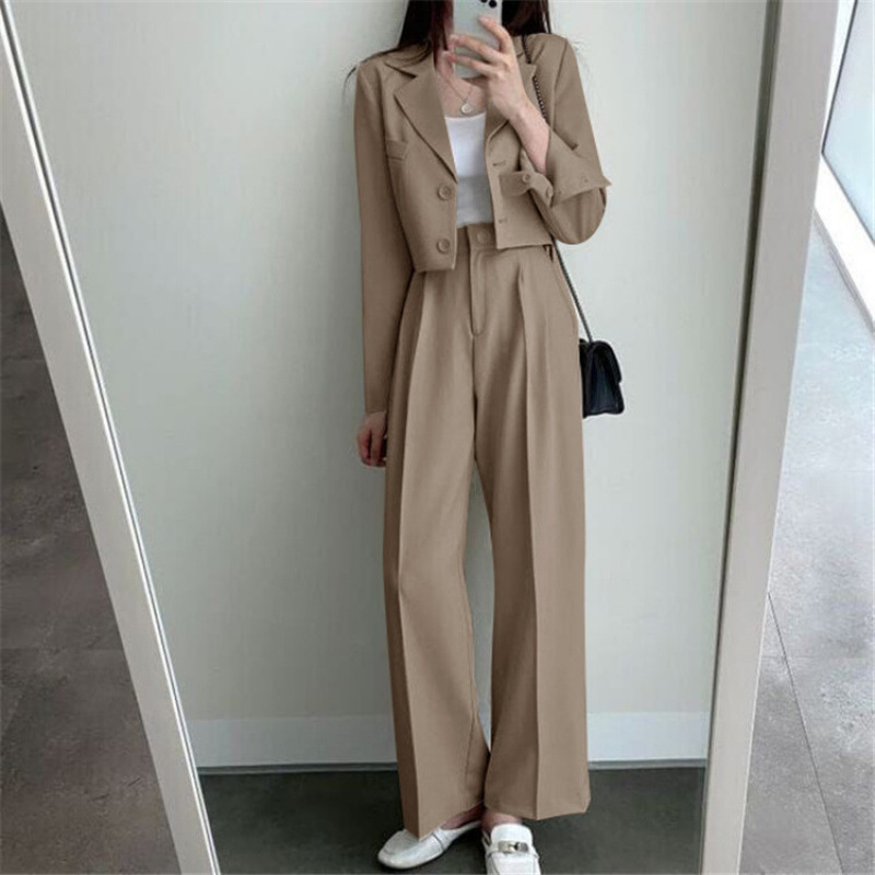 한국 세련된 기질 옷깃 작은 세트 긴 소매 짧은 코트 높은 허리 넓은 다리 걸레 세트 세트스토어 가기