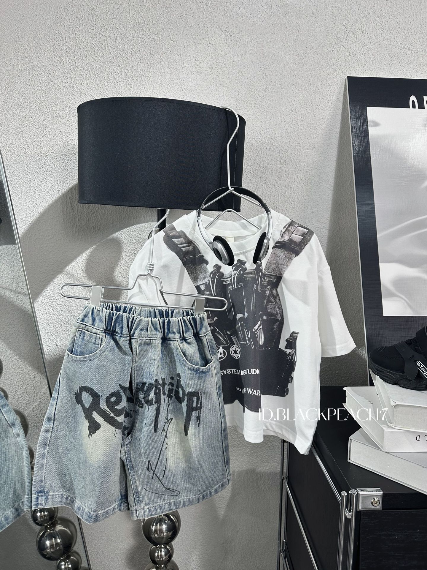 2025 여름 남아용 한국 스타일 프린트 데님 반바지 아동복 여름 반바지 트렌디한 레터 프린트스토어 가기