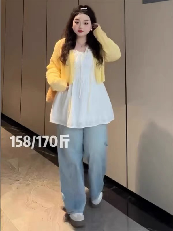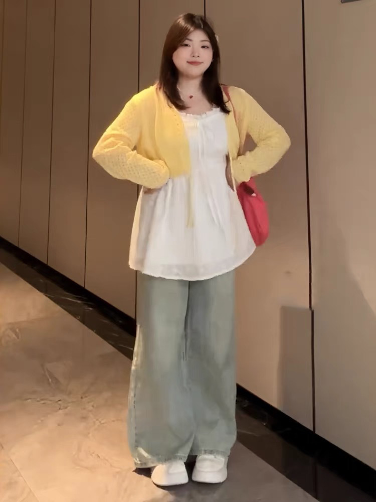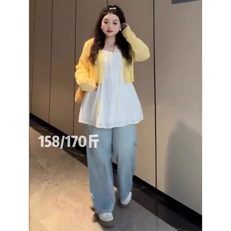 [8907 컬렉션] 플러스 사이즈 통통녀 프랑스 스위트 레이스 슬링 니트 카디건 2 종 봄