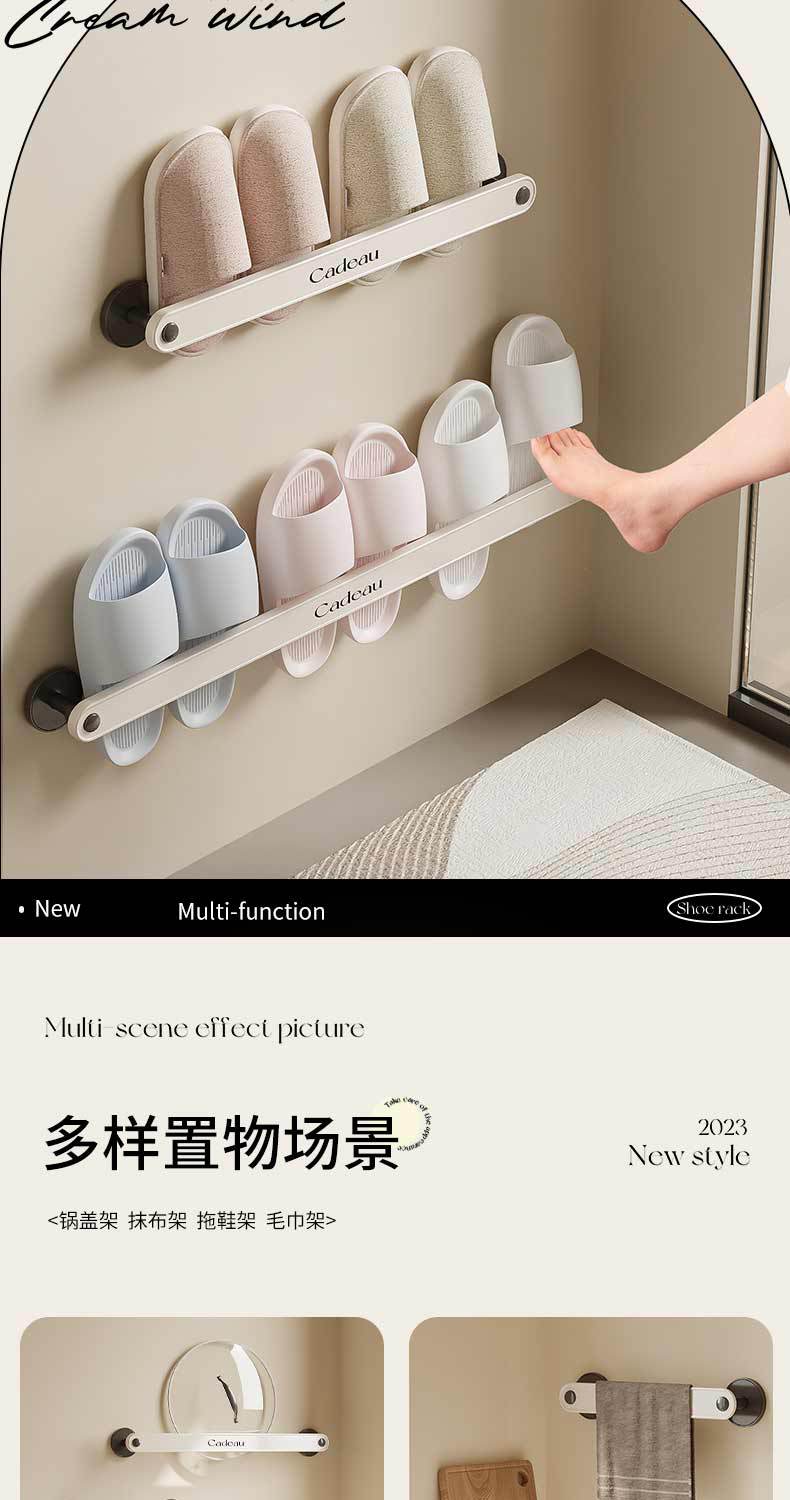 욕실 슬리퍼 랙, 펀치 없는 욕실 신발 보관 랙, 화장실 벽걸이형 도어 뒤 배수구 보관 랙 크림