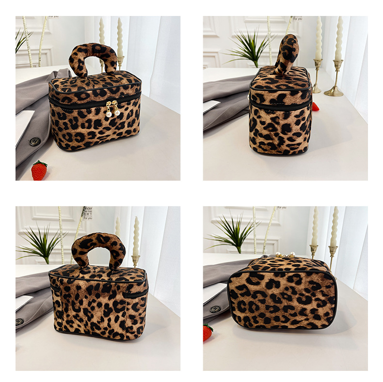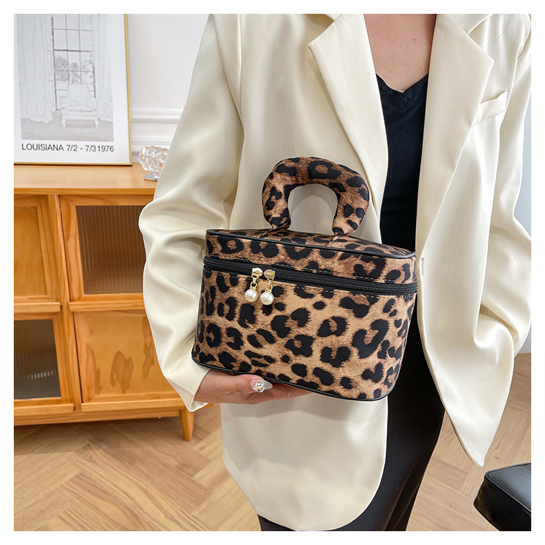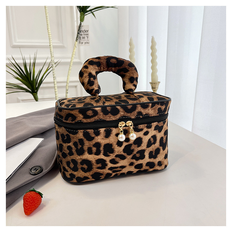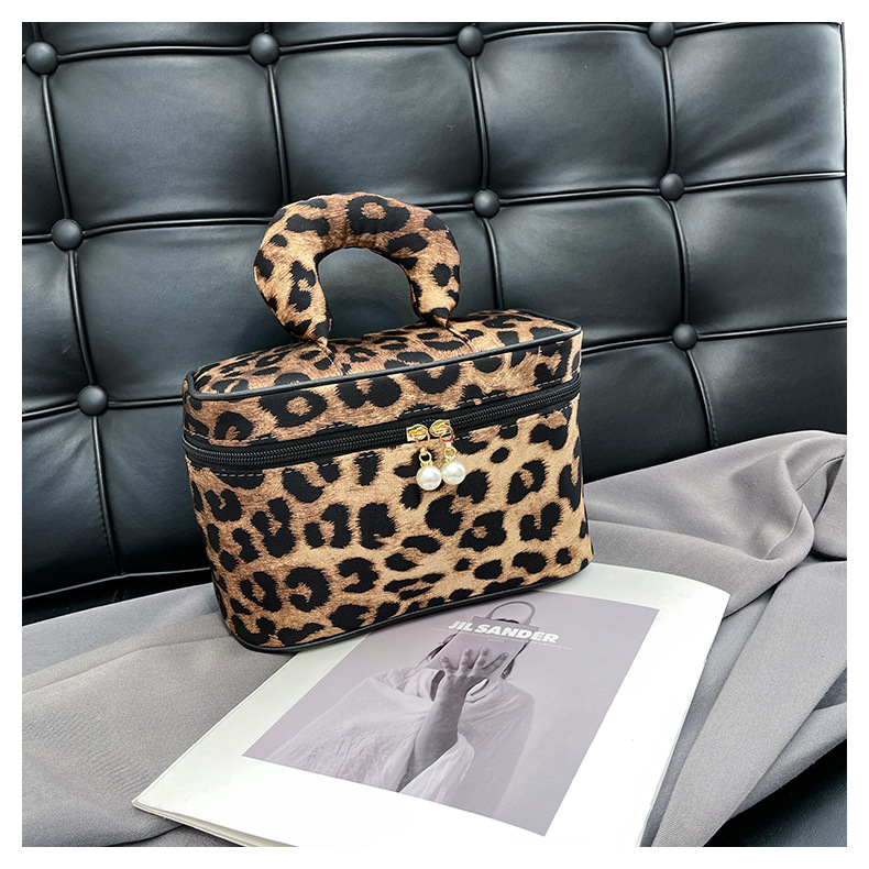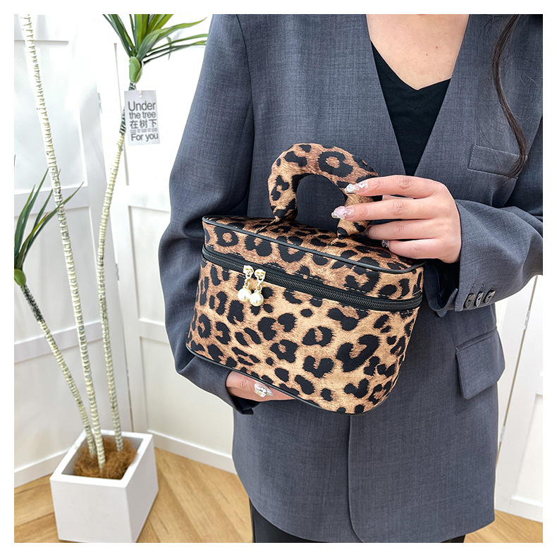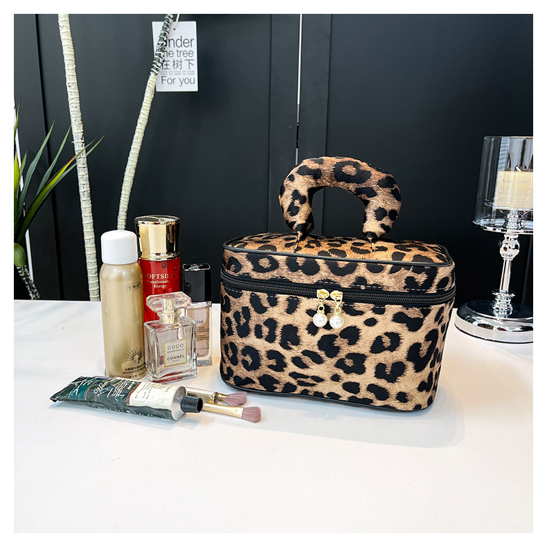 2025 새로운 고급 표범 인쇄 화장품 가방 여성 대용량 휴대용 여행 세면 용품 저장 가방 립스틱 미니스토어 가기