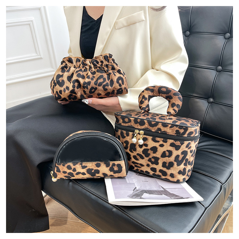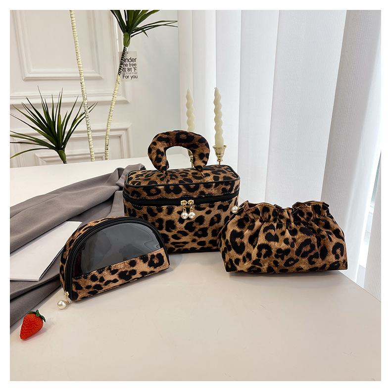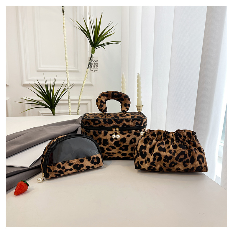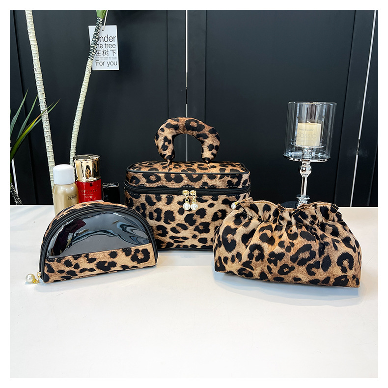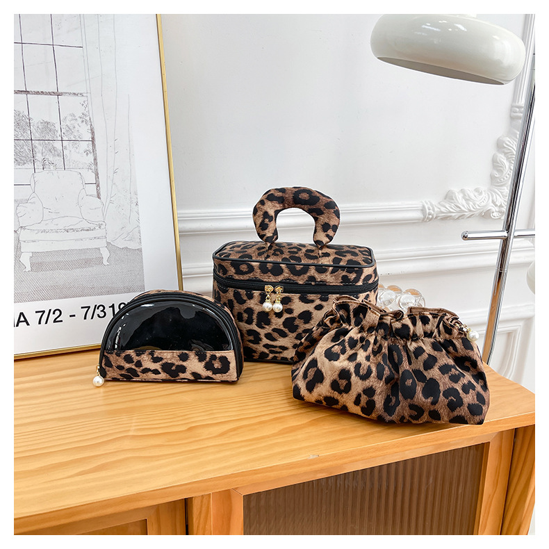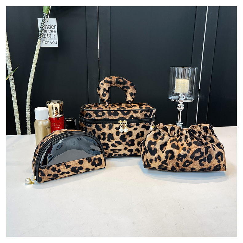 2025 새로운 고급 표범 인쇄 화장품 가방 여성 대용량 휴대용 여행 세면 용품 저장 가방 립스틱 미니스토어 가기
