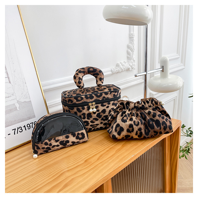2025 새로운 고급 표범 인쇄 화장품 가방 여성 대용량 휴대용 여행 세면 용품 저장 가방 립스틱 미니