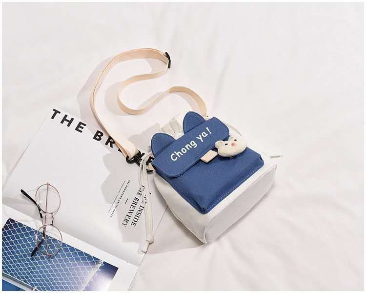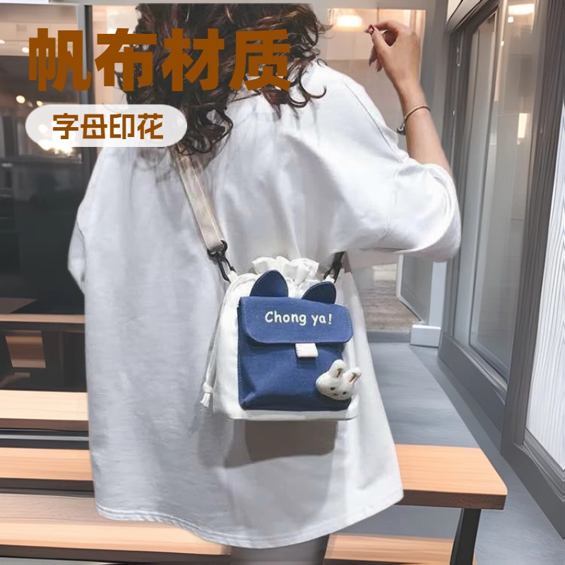 대외 무역 여성 가방 2025 새로운 캔버스 가방 한국 스타일 패션 버킷 가방 대비 색상 싱글 숄더 크로스 바디 백 드롭 배송