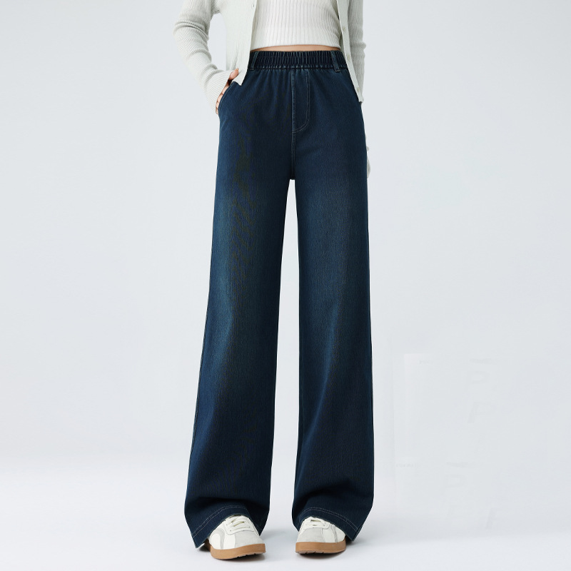 높은 허리 슬리밍 세탁 면화 플러스 사이즈 데님 스트레이트 바지 여름 얇은 느슨한 넓은 다리 한국 스타일 올 매치 캐주얼 바지스토어 가기