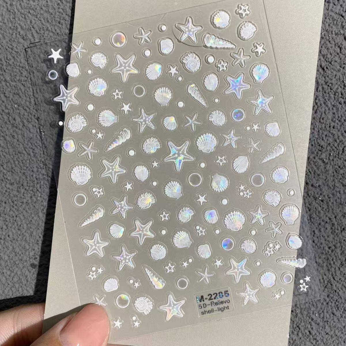 새로운 5D 양각 기능 스타일 인기 쉘 라이트 불가사리 쉘 네일 아트 스티커 접착제 네일 배치가있는 네일 스티커
